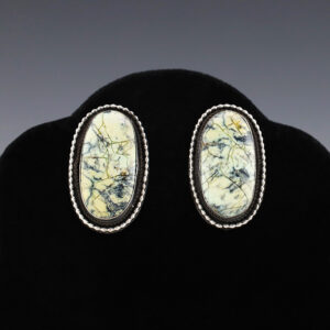 Lovely earrings hand made out of sterling silver and Wild Horse. Hand made by Navajo silversmith Carol Wylie. These fabulous earrings will become a versatile accessory in your jewelry collection. Weighs 10 grams. Signed. 5/8″ x 1 3/16″ Artist card included The Navajos began working with silver...