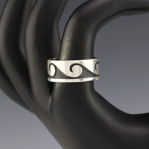 Hopi artist Darren Seweyestewa created this wonderful ring through the overlay technique. Hopi overlay is constructed from two layers of sterling silver. A design is cut out with a jeweler’s saw by hand. This top design layer is then silver soldered to another sheet, the bottom layer, of silver. Texturing...