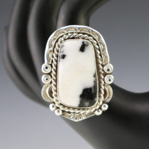 NAVAJO STERLING SILVER & ZEBRA STONE RING BY FRED FRANCIS 10 1/2