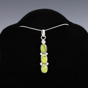 Zuni artist Diane Lonjose hand made this beautiful pendant. Made out of sterling silver and Serpentine. The components are all hand fabricated, and the stones are all natural. Diane comes from a family of Zuni jewelers. She is the daughter of Alice and Duane Quam, and grandchild of Doris and...