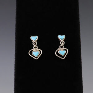 NATIVE AMERICAN ZUNI SILVER & TURQUOISE HEART EARRINGS BY FAYE LOWSAYATEE