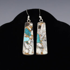 Gorgeous earrings hand made out of sterling silver and Turquoise by Navajo silversmith Selena Warner. These fabulous earrings will become a versatile accessory in your jewelry collection. Weighs 8 grams. Signed. 1/2″ x 1 13/16″ Artist card included The Navajos began working with silver in the 19th century, and began...