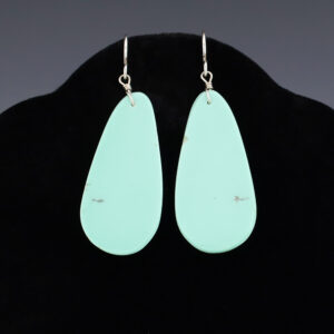 Lovely earrings hand made out of sterling silver and Turquoise by Navajo silversmith Selena Warner. These fabulous earrings will become a versatile accessory in your jewelry collection. Weighs 8 grams. Signed. 1/2″ x 1 3/4″ Artist card included The Navajos began working with silver in the 19th century, and began...