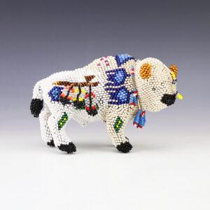 Zuni artist, Todd Poncho hand beaded this exquisite buffalo dancer with an amazing degree of detail. A great addition to your Zuni beadwork or Native American art collection. Signed 5 3/8” tall x 4” long x 2 3/4” wide Artist card included Zuni beadwork has evolved from tourist souvenirs to...