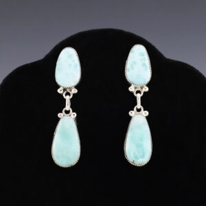 Zuni artist, Diane Lonjose made these gorgeous earrings. Made out of sterling silver and set with natural Larimar stones. The components are all hand fabricated, and the stones are all natural. Diane comes from a family of Zuni jewelers. She is the daughter of Alice and Duane Quam, and grandchild...
