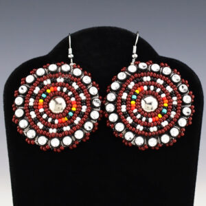 Zuni artist McKeffe made these beautiful beaded earrings. The beading is backed with a soft leather. 1 5/8″ wide x 1 5/8” tall With ear wires are 2 7/16” in length Artist card included Zuni Pueblo is the largest pueblo in New Mexico, and because of its...