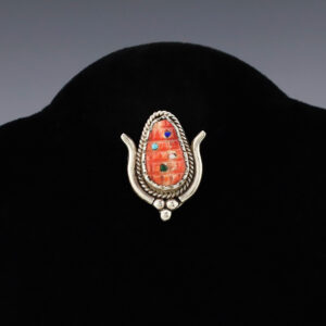 NATIVE AMERICAN ZUNI SPINY OYSTER CORN PIN BY TRACY BOWEKATY