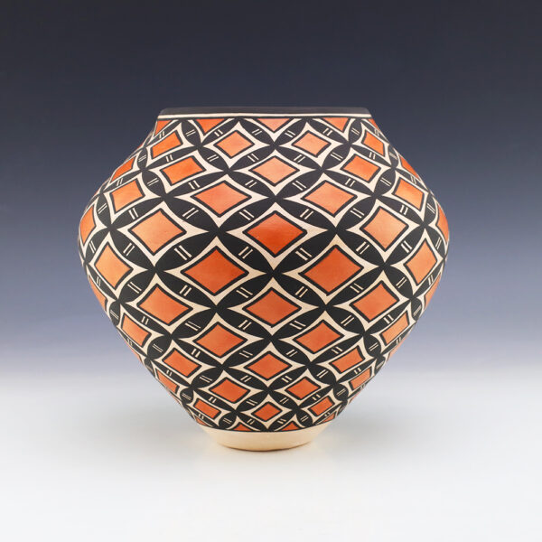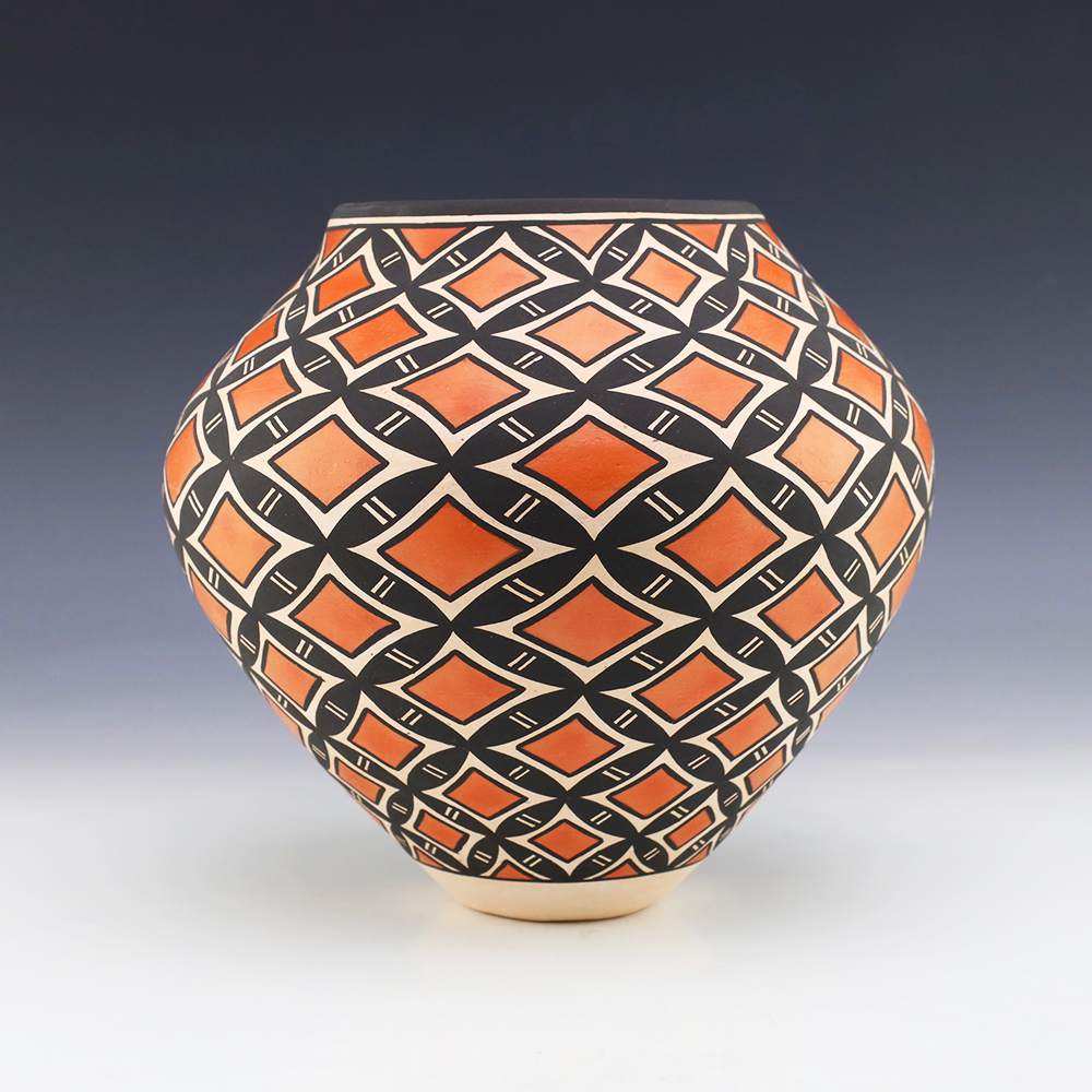 This exquisite vase was handmade by Alvina Yepa from Jemez Pueblo. Alvina is of the Sun Clan and has been a potter since 1982. She was taught traditional pottery making by her mother, Felipita Yepa. Alvina is known for her stone polished redware jars, melon bowls and large incised ollas. ...