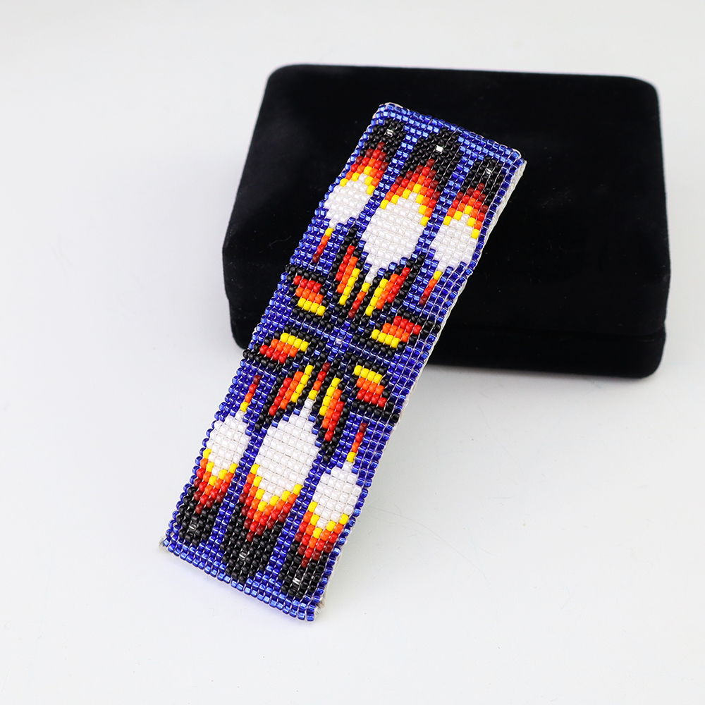 When trade beads were introduced to Native Americans, they made these colorful glass beads part of their jewelry. Over the years, glass beads have been used to complement traditional designs and to adorn everything from clothing to ceremonial objects. Artists from the Navajo Reservation in the Four Corners Area, bead a variety of items, such as bracelets, key rings, barrettes, rattles, earrings, and much more. With beautiful designs and brilliant colors, Native American beadwork is appreciated by collectors worldwide.