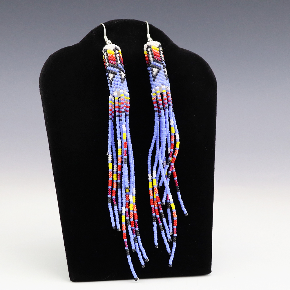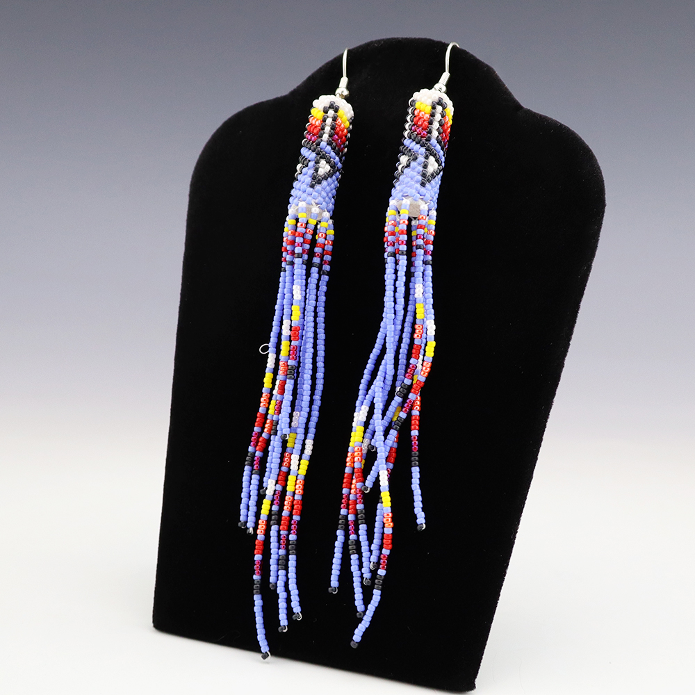 These beautiful beaded earrings will make a statement! Great colors and designs. Hand made by Navajo artist Lorraine Burbank.