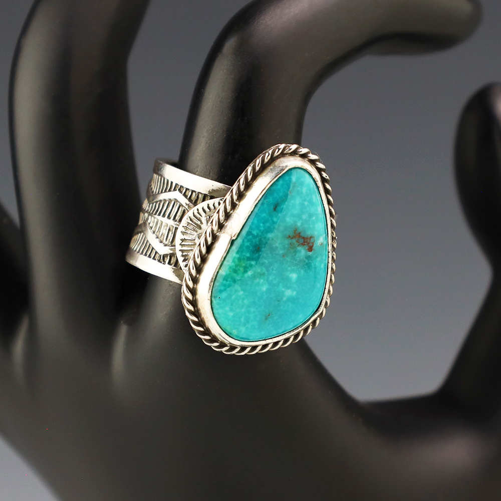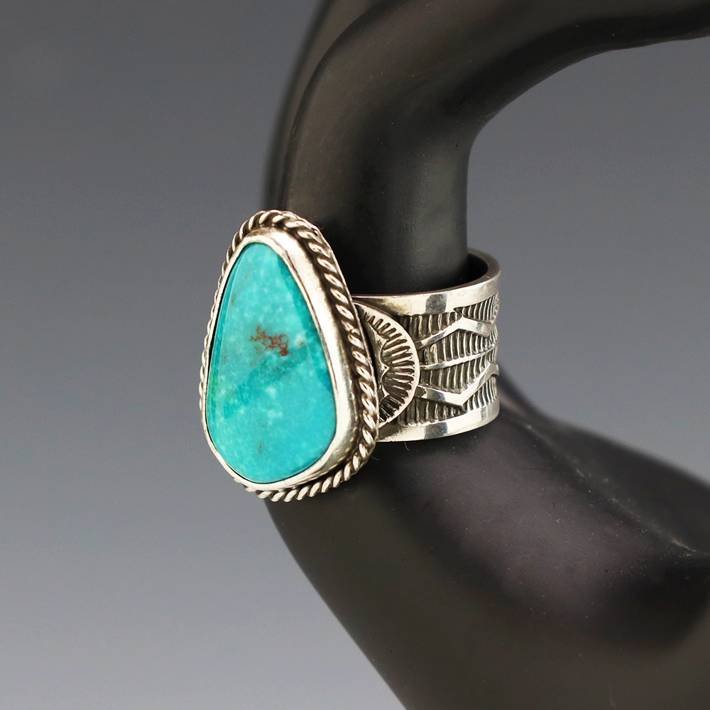 TURQUOISE & JET & RING BY NANCY & SHELDON WESTIKA ZUNI 8