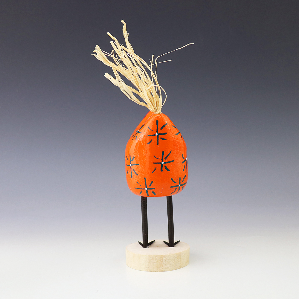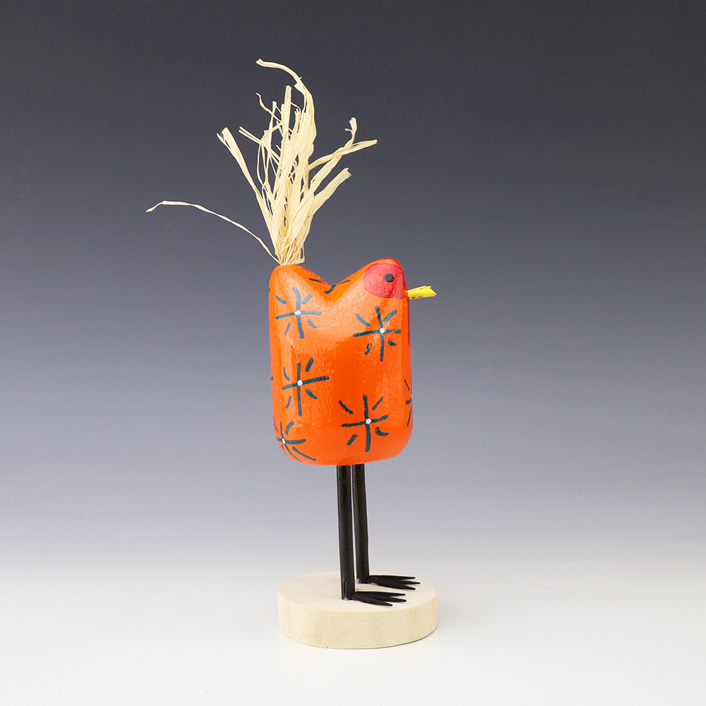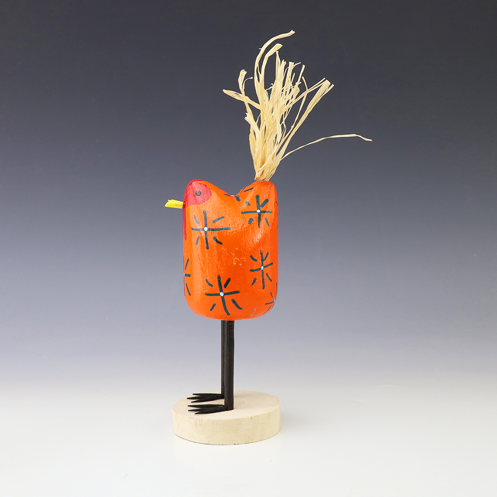 Edith John is the daughter of the late Woody Herbert who was known for his folk art Brahma bulls. Edith started carving while helping her father. Edith’s folk art chickens elicit happiness wherever they roost! Bold colors and patterns, that will brighten your Navajo folk art collection. Hand carved out of wood with a straw tail. Signed