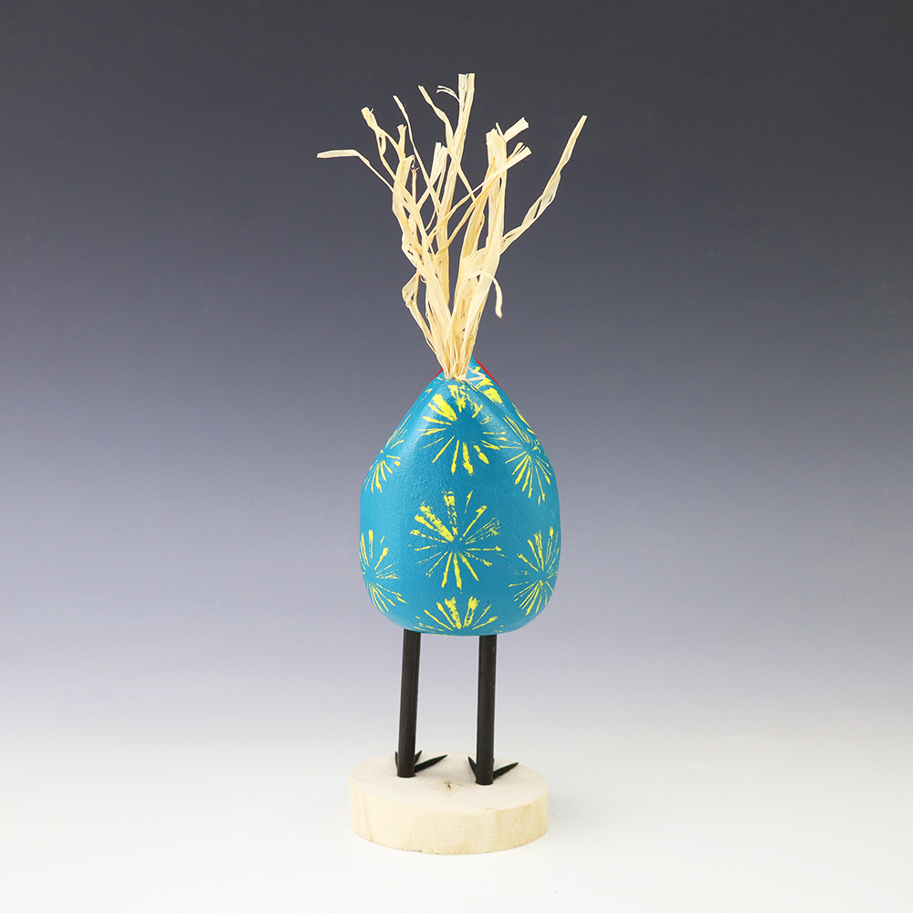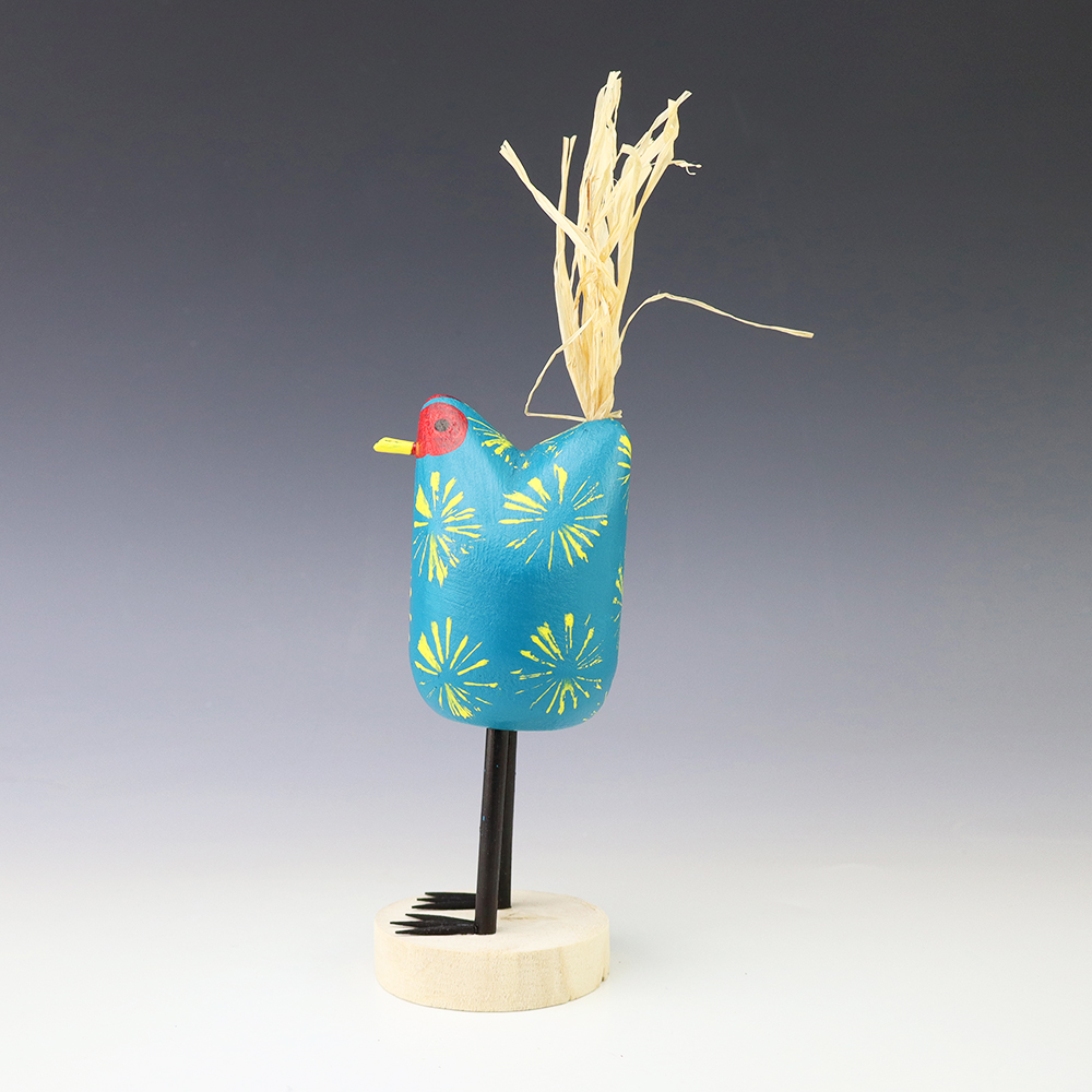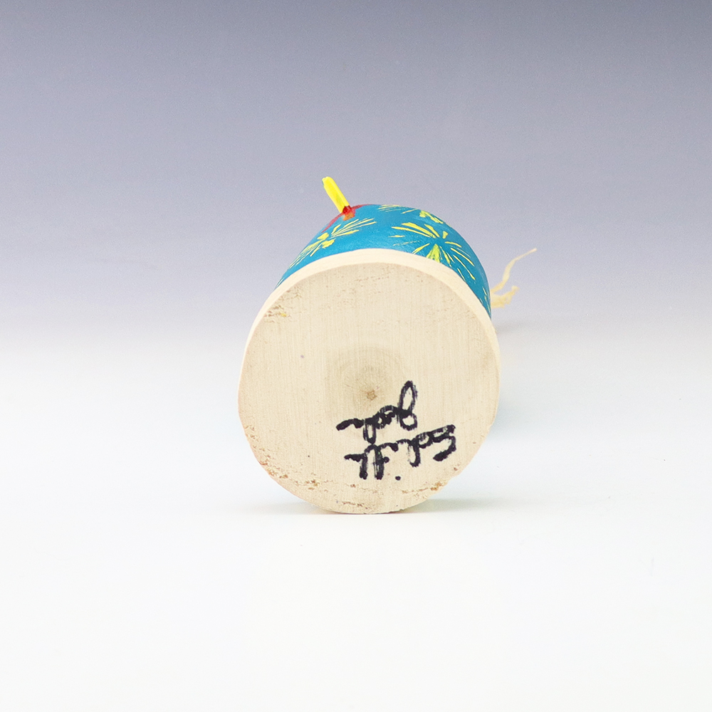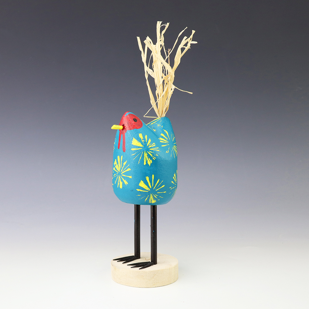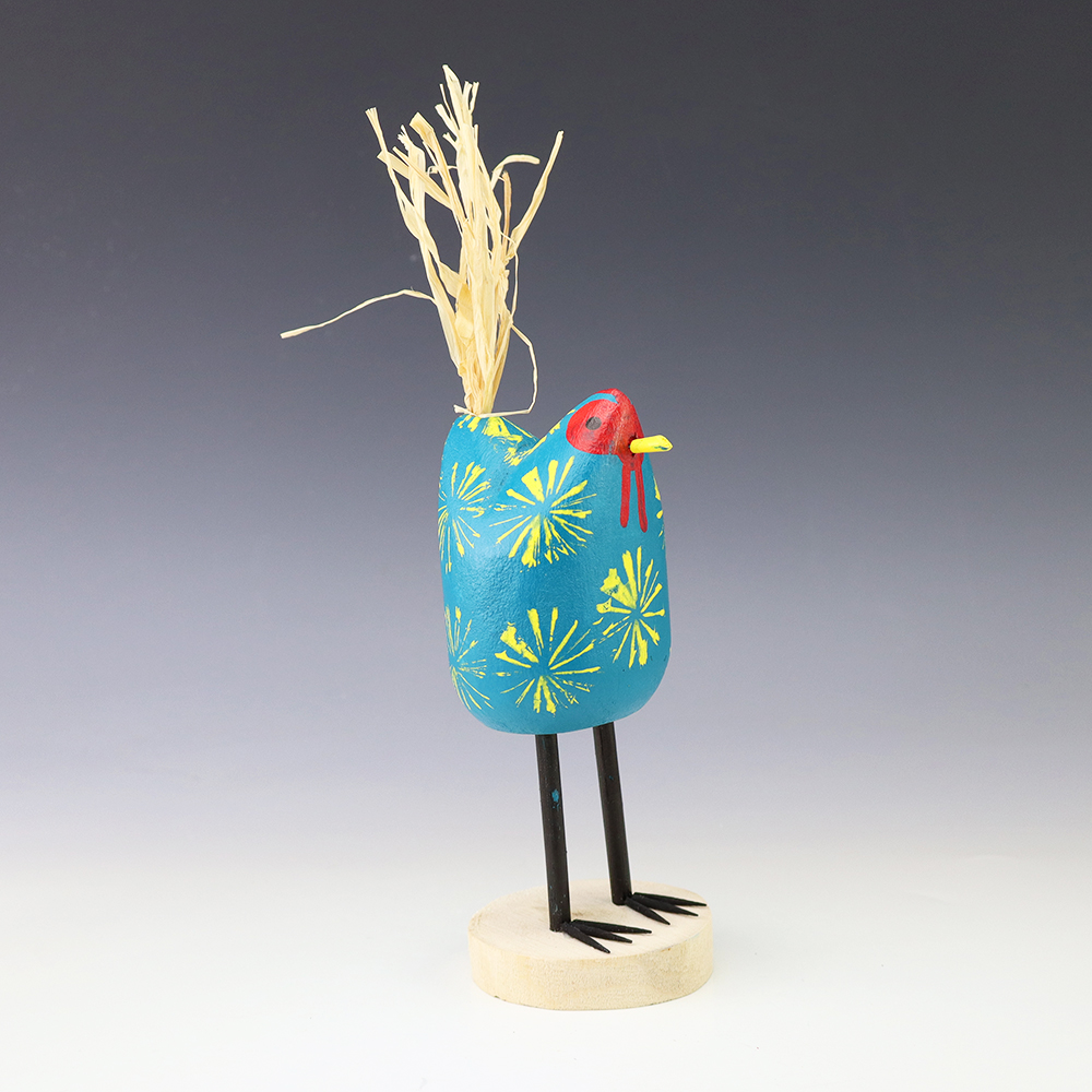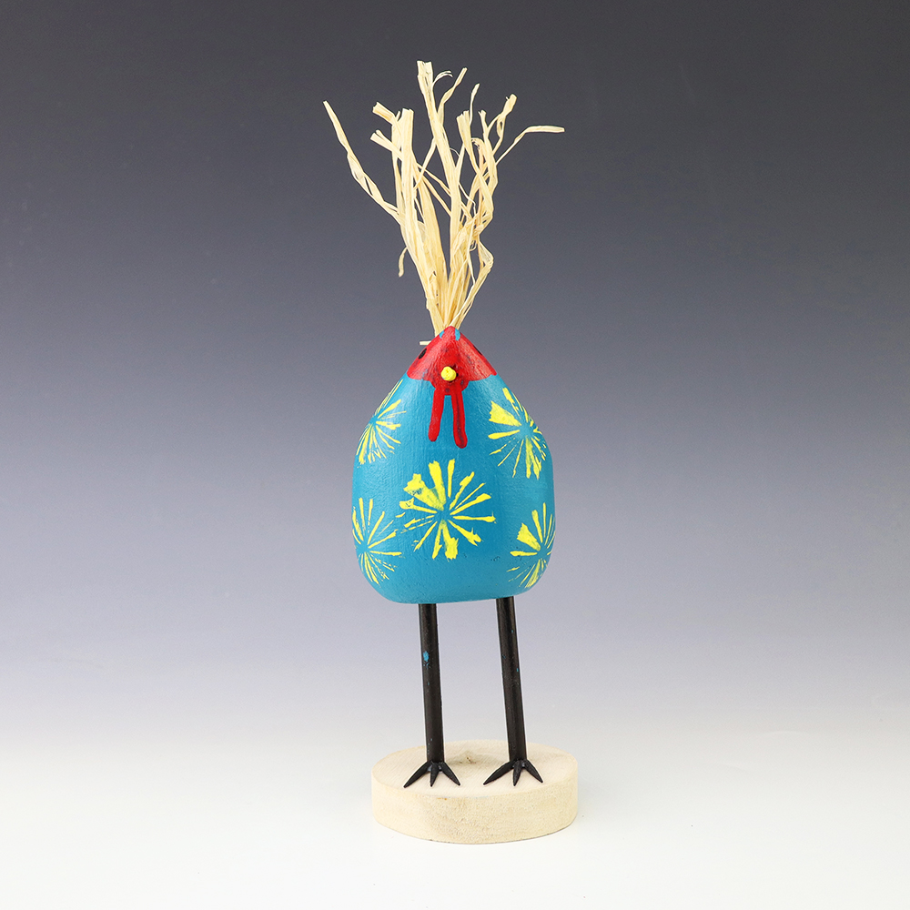 Edith John is the daughter of the late Woody Herbert who was known for his folk art Brahma bulls. Edith started carving while helping her father. Edith’s folk art chickens elicit happiness wherever they roost! Bold colors and patterns, that will brighten your Navajo folk art collection. Hand carved out of wood with a straw tail. Signed