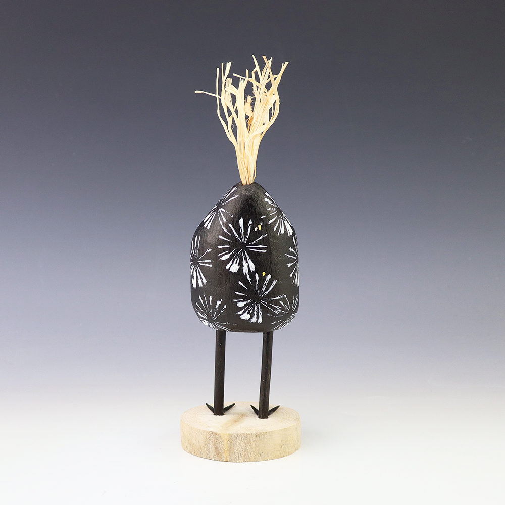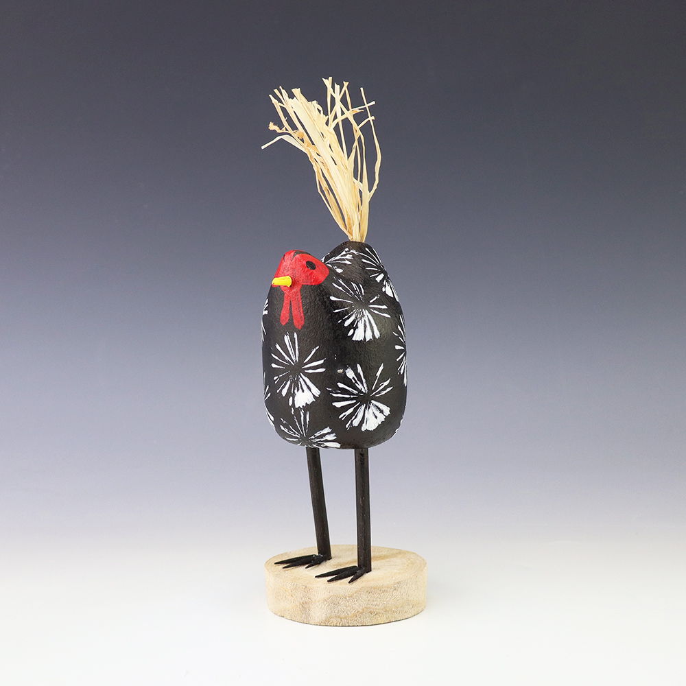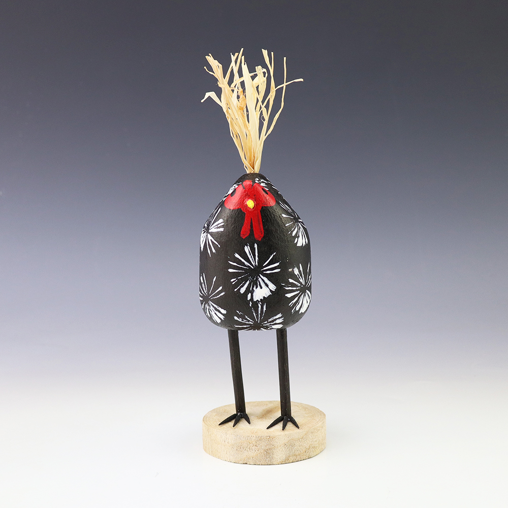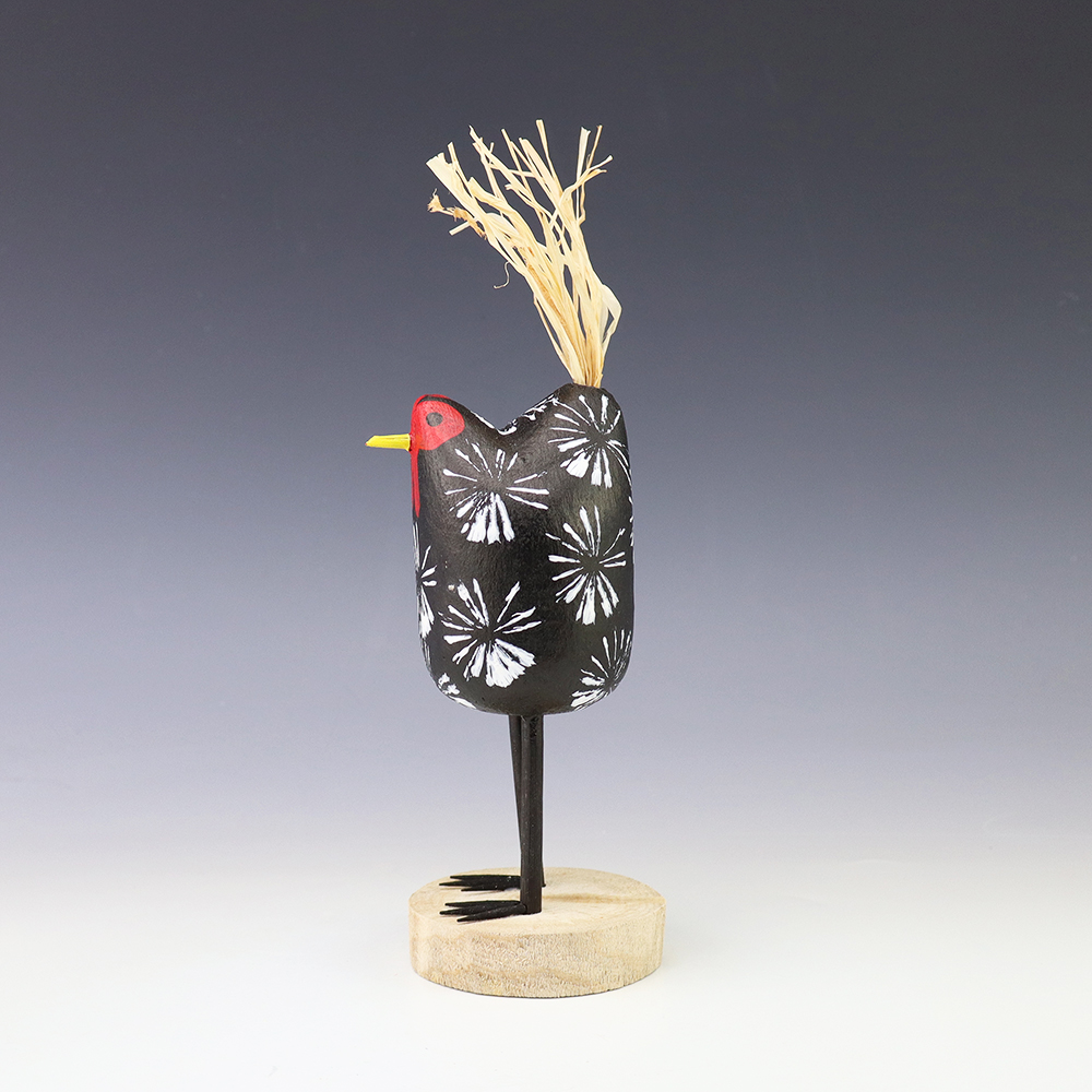 Edith John is the daughter of the late Woody Herbert who was known for his folk art Brahma bulls. Edith started carving while helping her father. Edith’s folk art chickens elicit happiness wherever they roost! Bold colors and patterns, that will brighten your Navajo folk art collection. Hand carved out of wood with a straw tail. Signed