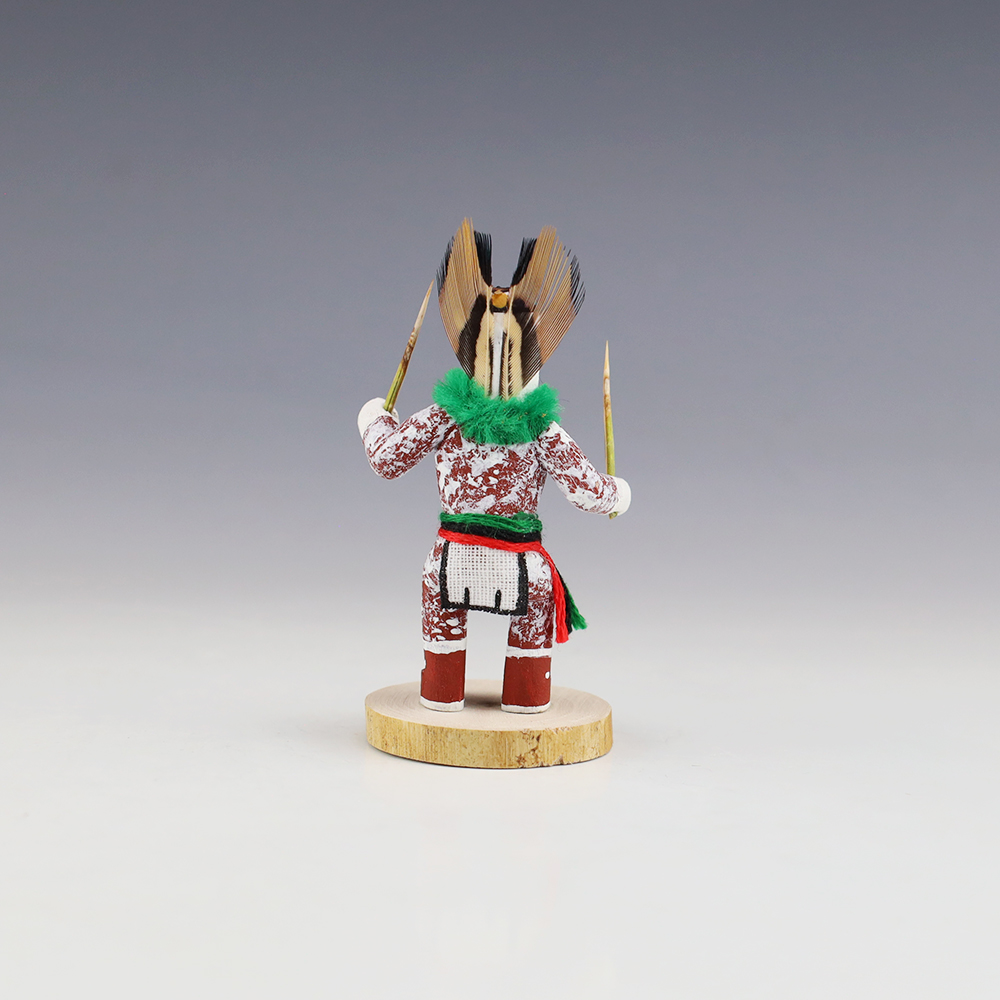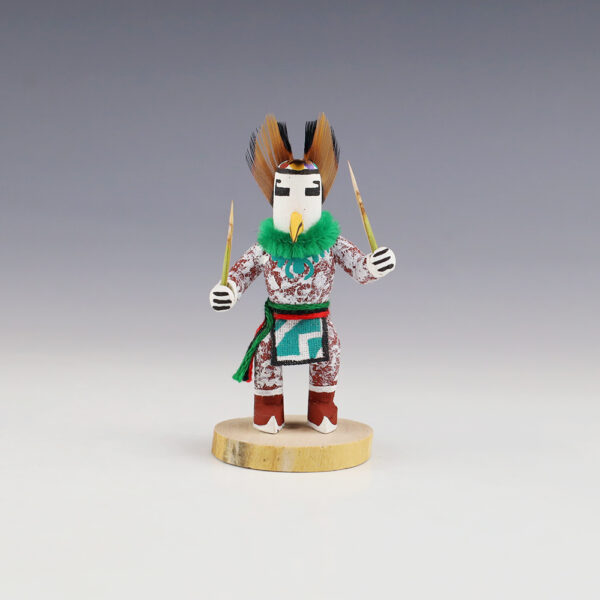 Hopi Kachina carver Logan Honanie carves each kachina out of cottonwood with an amazing amount of detail and precision. The Red Tail Hawk Kachina is a protector of important sacred katsinam. He is also seen a warrior, an enforcer, and a guard. An exquisite addition to your Native American...