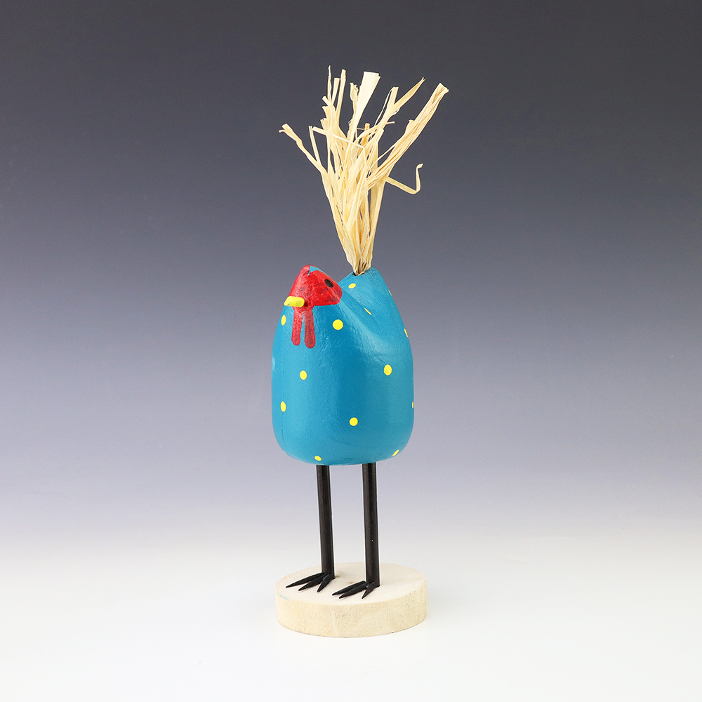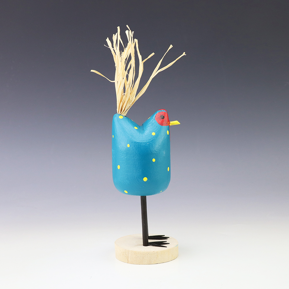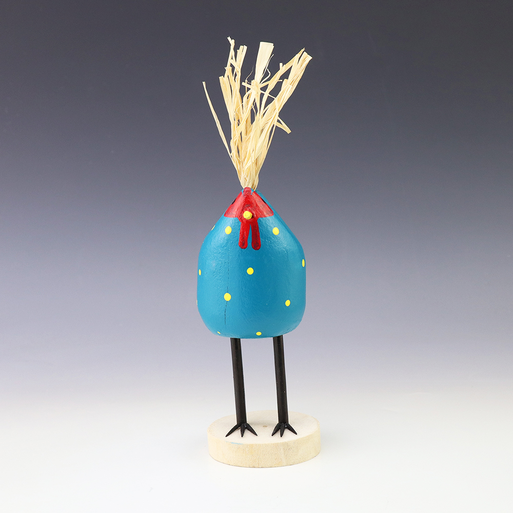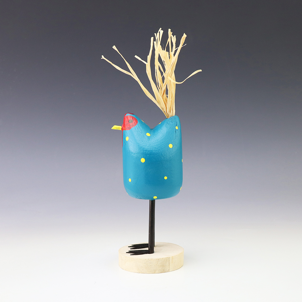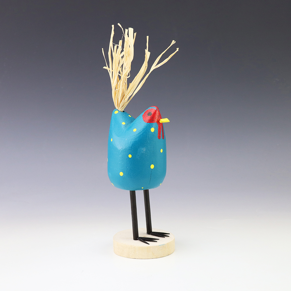 Edith John is the daughter of the late Woody Herbert who was known for his folk art Brahma bulls. Edith started carving while helping her father. Edith’s folk art chickens elicit happiness wherever they roost! Bold colors and patterns, that will brighten your Navajo folk art collection. Hand carved out of wood with a straw tail. Signed