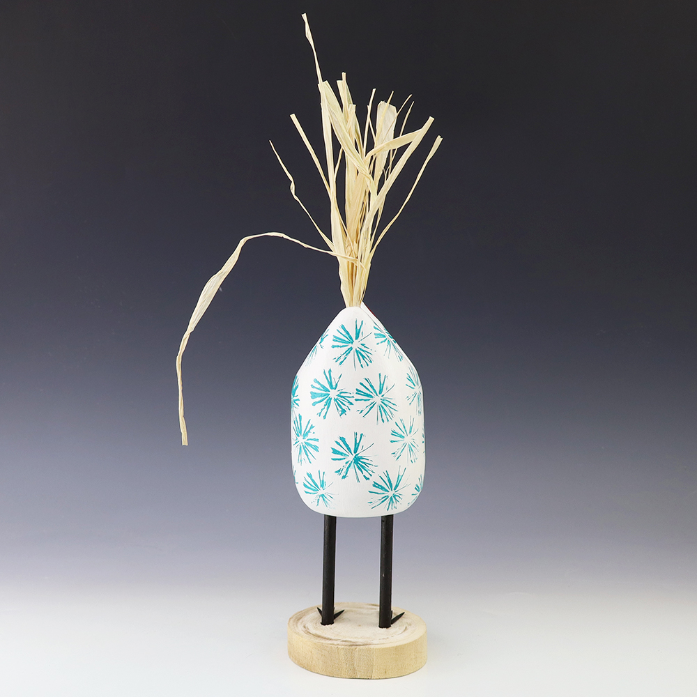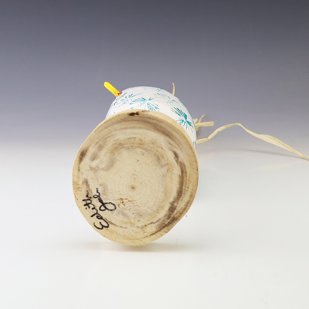 Bold colors and patterns, that will brighten your Navajo folk art collection. Hand carved out of wood with a straw tail by Navajo artist Candie John. Signed 9 3/4” tall x 2 7/8” long x 2 3/4” wide (height is to top of straw tail) Artist card included In recent...
