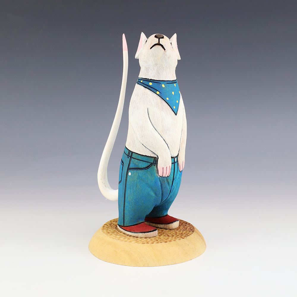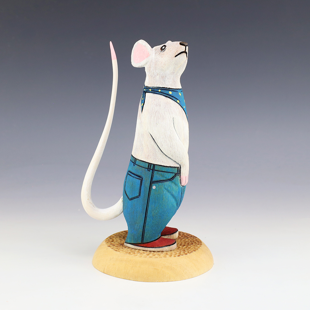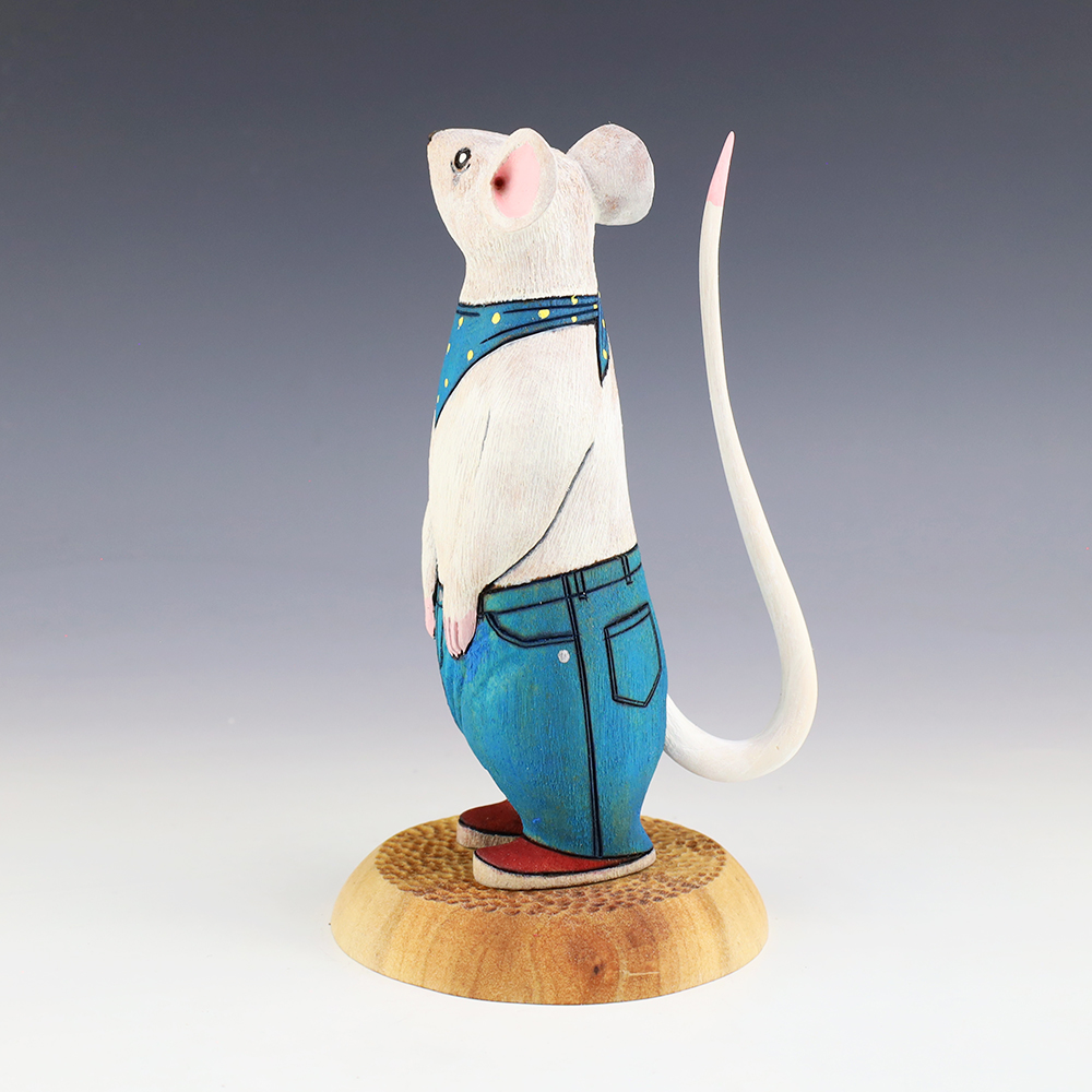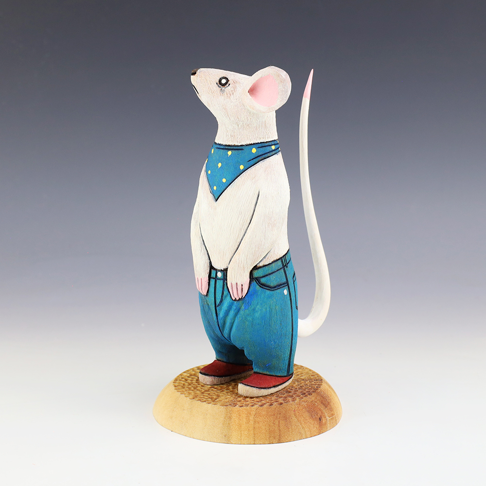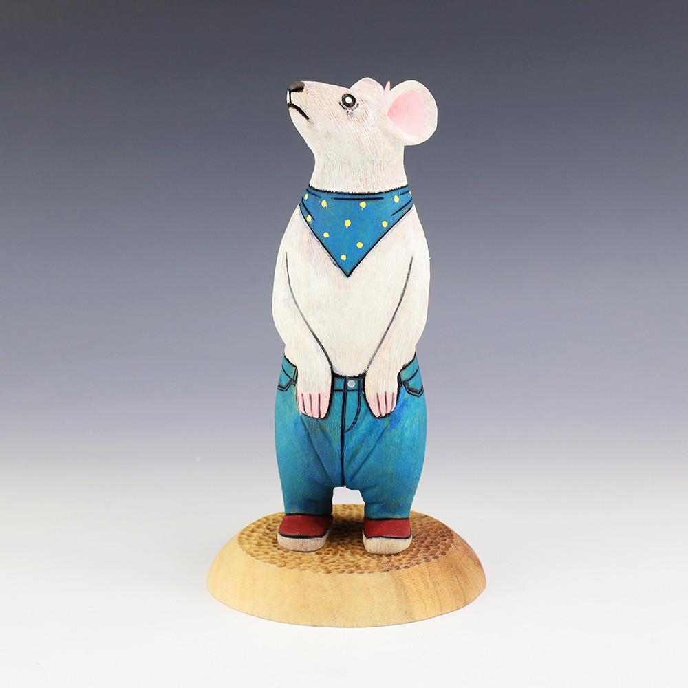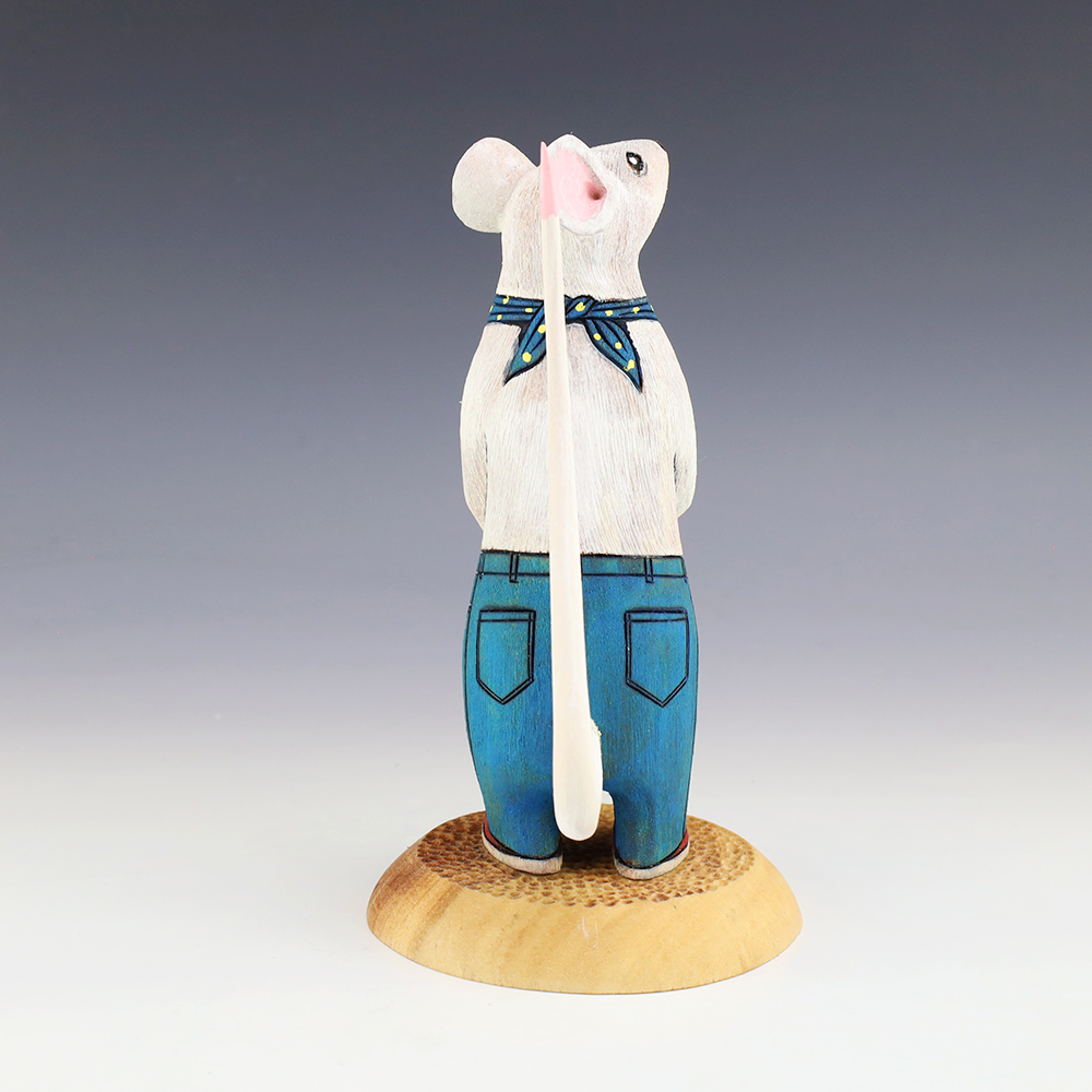 This darling Mouse is hand crafted by Navajo folk art artists Ray and Orleen Lansing. Carved out of wood with an amazing amount of detail. This mouse carving would make a wonderful addition to your Native American or Navajo Folk art collection. Signed