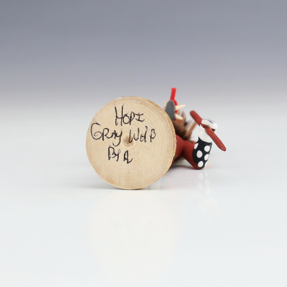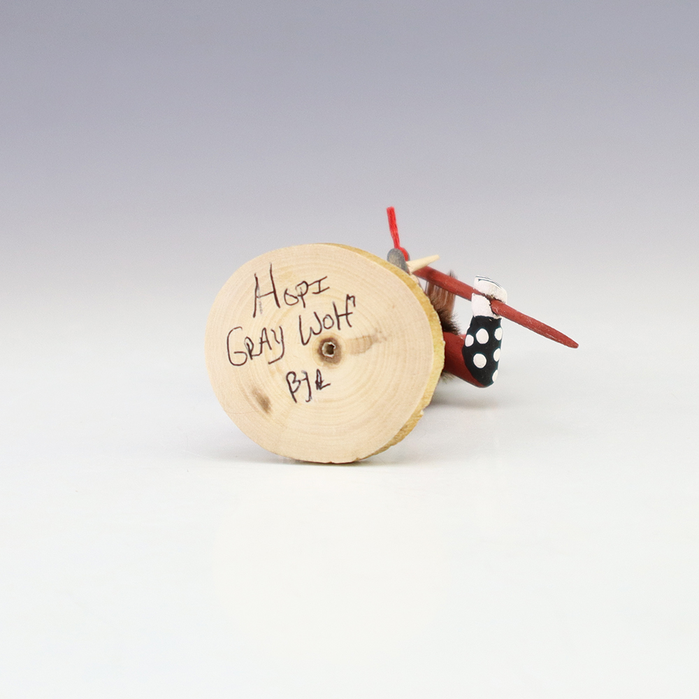 Hopi/Acoma artist Adrian Leon creates wonderful miniature kachinas, and this Gray Wolf Kachina is no exception. Delicately carved and painted, this marvelous carving would be a great addition to your kachina or Native American art collection. Signed