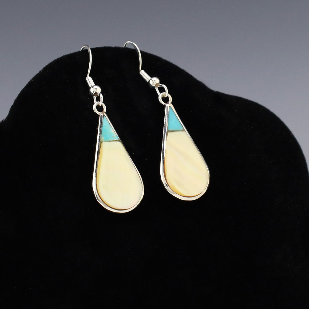 NATIVE AMERICAN ZUNI TURQUOISE EARRINGS BY NANCY & SHELDON WESTIKA