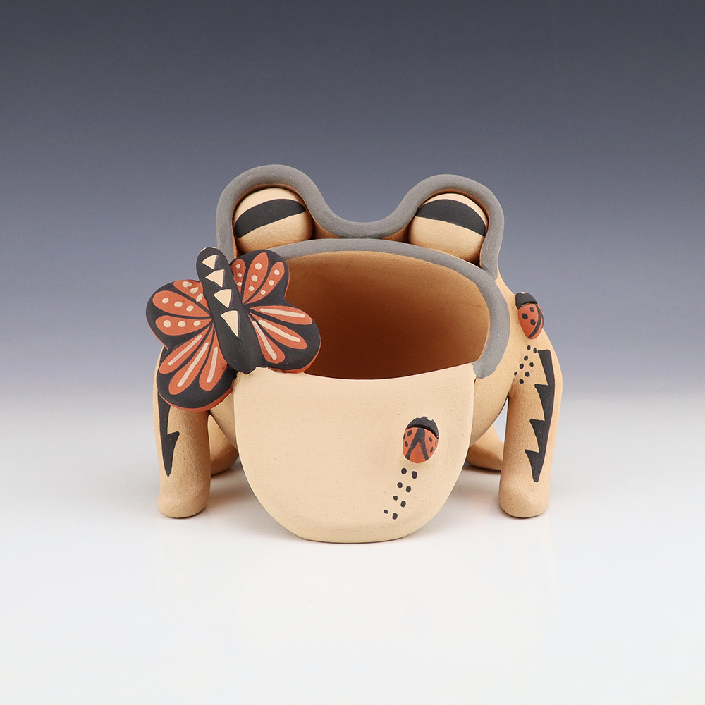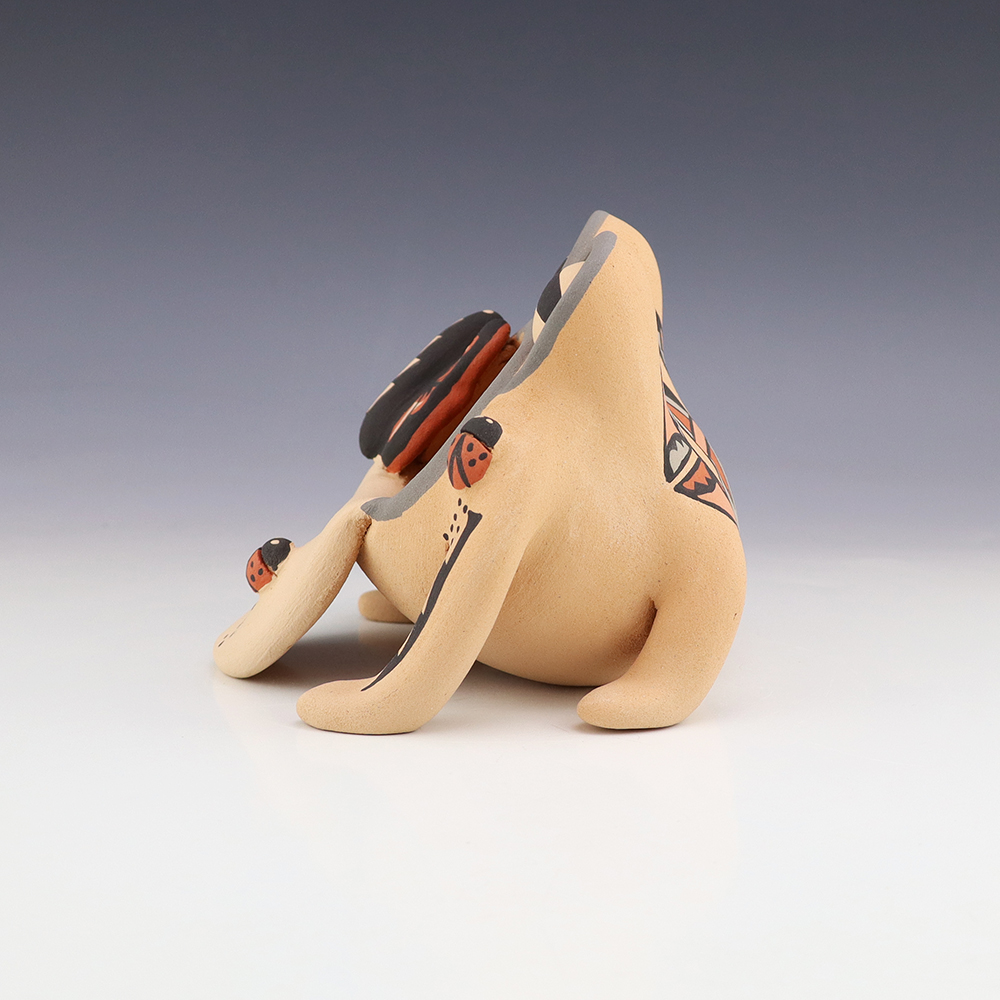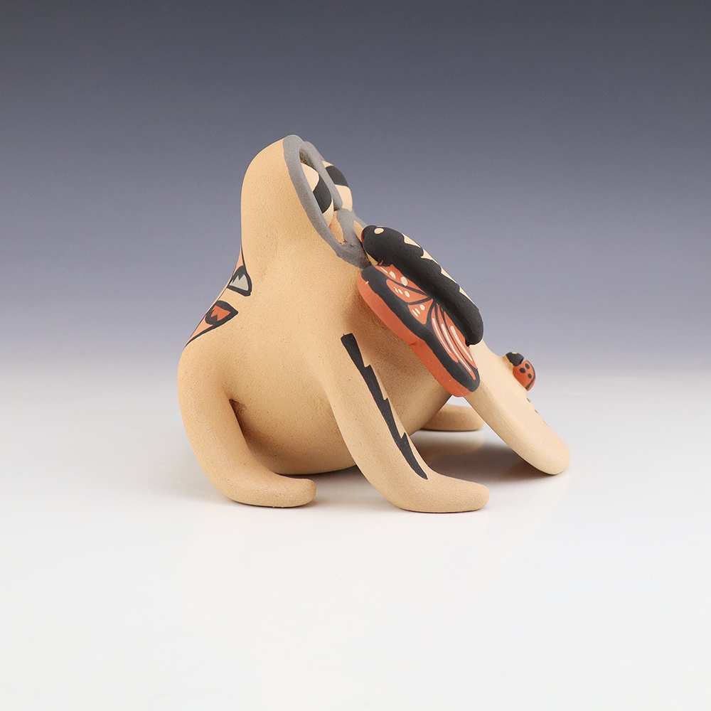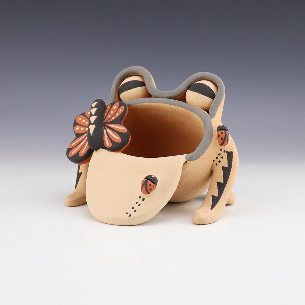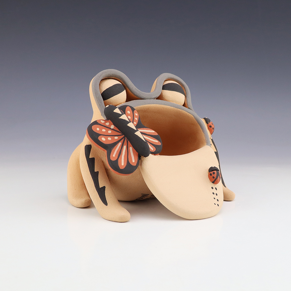 A charming addition to any art or pottery collection. Birdell “Vine Flower” Bourdon from the Santa Clara Pueblo, made this pottery bear with natural clay. Birdell continues a long tradition of hand coiling pottery. She was taught the traditional methods by her mother, Marie Sisneros Askan, and she has been...