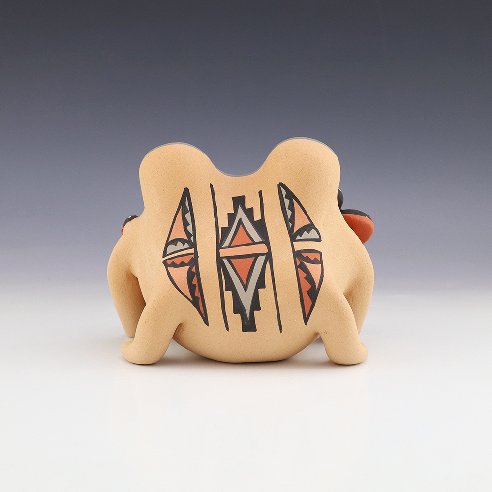 Within the Jemez Pueblo there are many exceptional potters. The work is generally characterized by the buff and red clays used, and the range of styles and subjects.  Storyteller, figures, sgrafitto designs, wedding vases, and melon pots are a few of their favorites. Before the arrival of the Spanish, Jemez was known for its traditional black-on-white ware, but production of this type of pottery died out in the early 18th century. There was a revival of Jemez pottery-making in the early 20th century inspired and influenced by Zia pottery designs, but it was not until the 1960’s and 70’s that a significant number of Jemez potters began producing high-quality work using traditional methods.