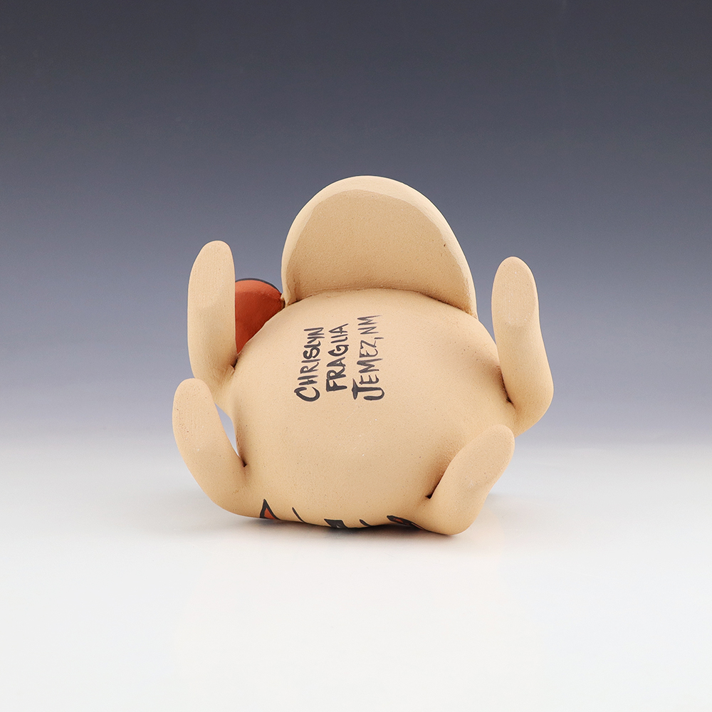 Cochiti potter Johnna Herrera hand crafted this outstanding pottery storyteller, which depicts a lady with a child.  Storytellers represent the passing down of stories orally through Pueblo tradition. Signed 4 1/4” tall x 2 3/4″ long x 2 1/4″ Artist card included Â
