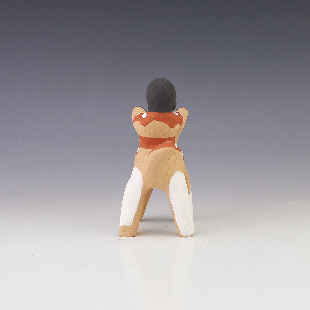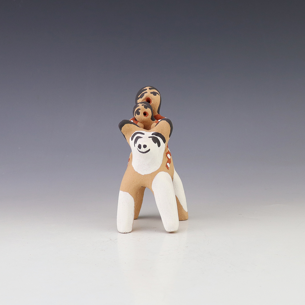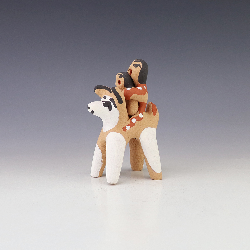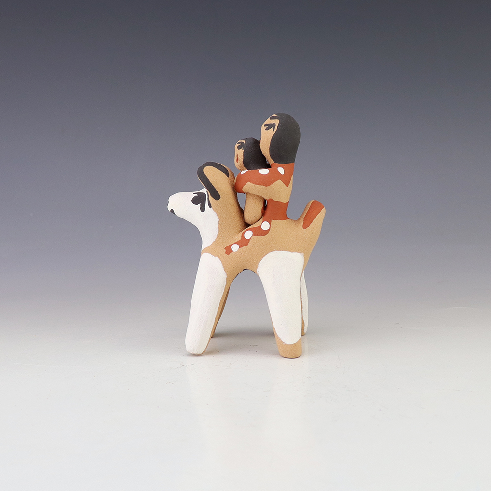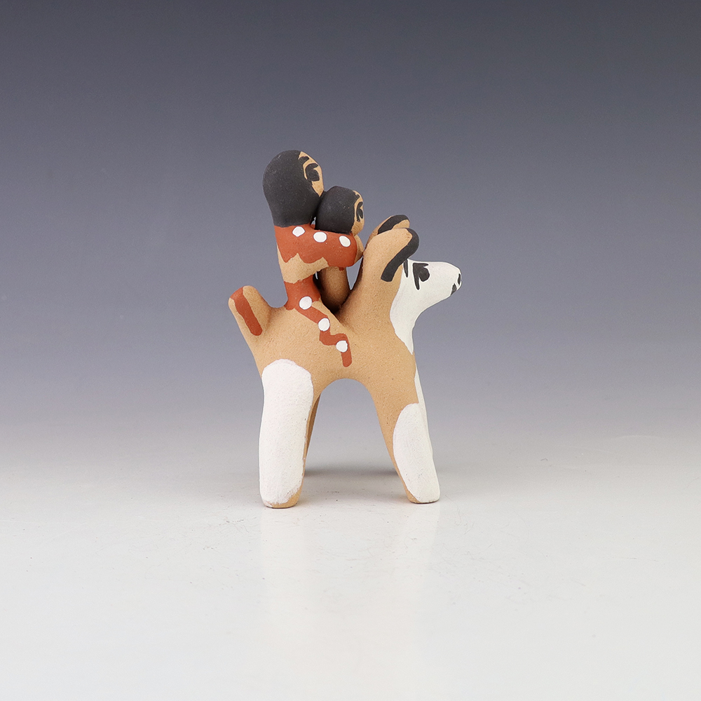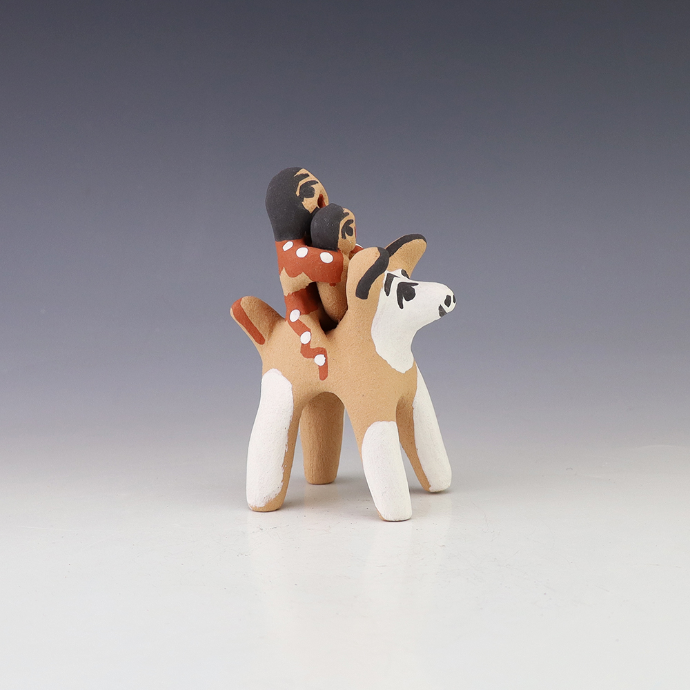 Jemez potter Felicia Fragua made this lovely horse and rider. Felicia uses both the coil method and pinch method to create her pottery pieces. Signed