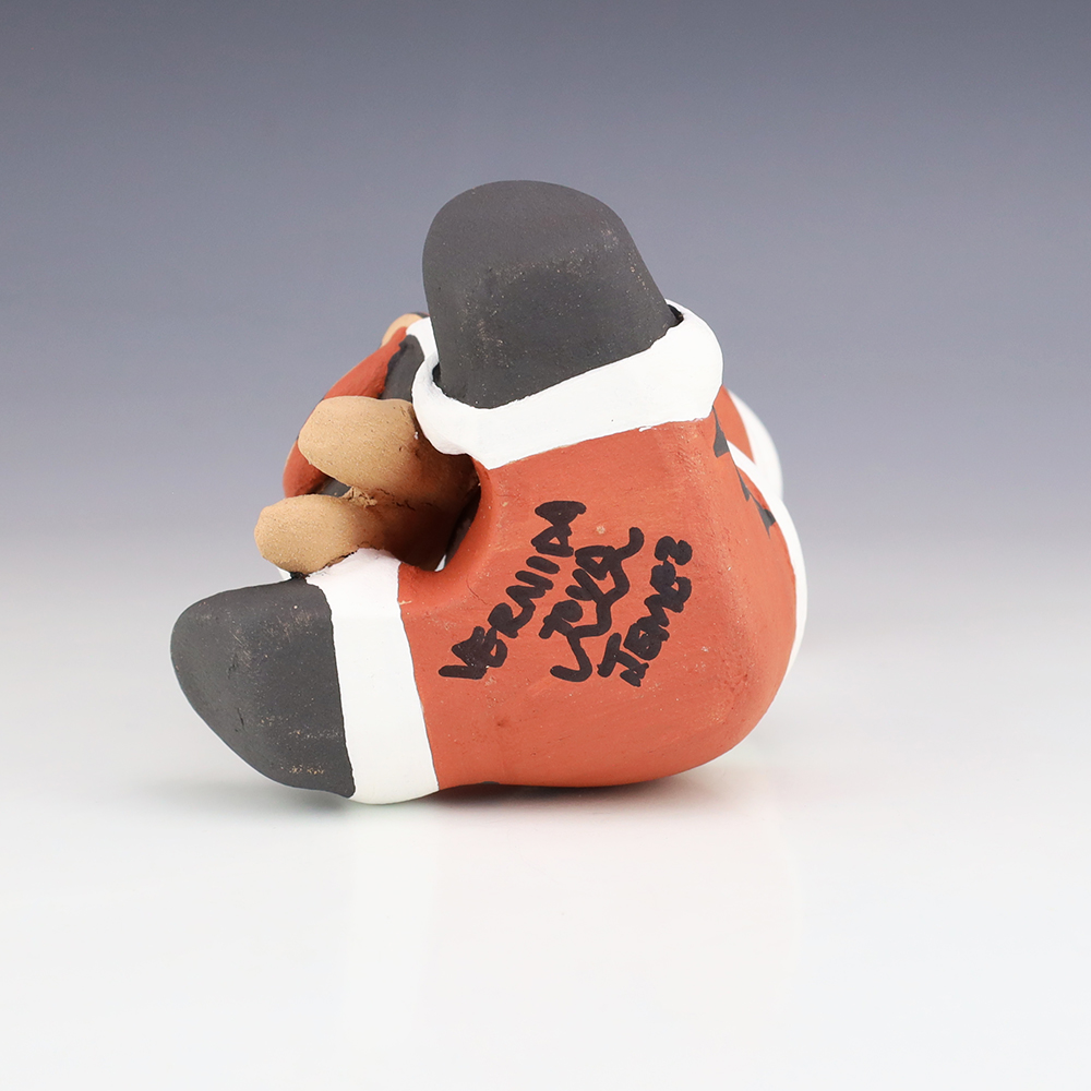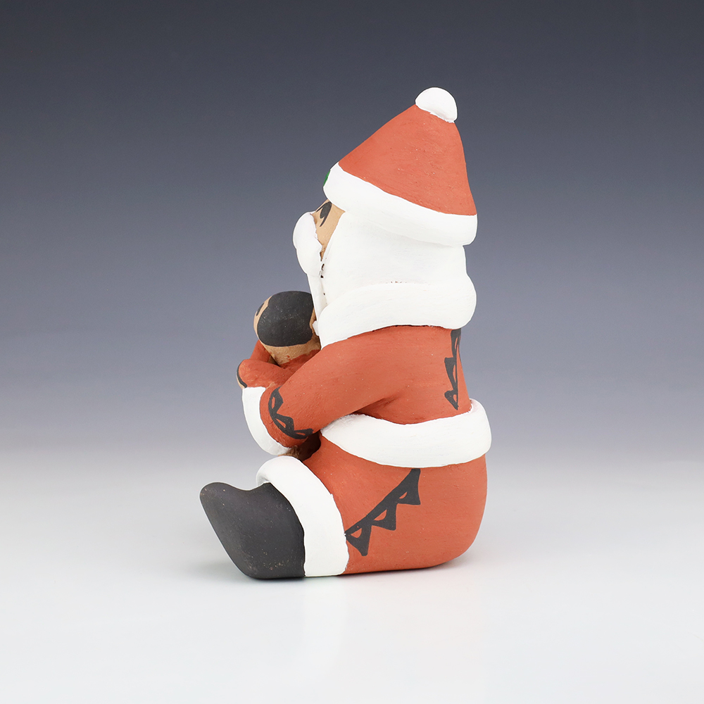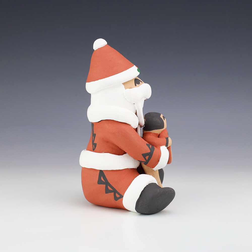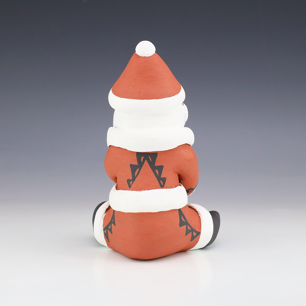 Jemez potter Venida Toya made this wonderful Santa Claus storyteller. Vernida uses both the coil method and pinch method to create her pottery pieces. Vernida is from the Jemez Pueblo. She is the daughter of famous potter Judy Toya. Vernida creates storytellers that are very unique to her own sense of style. In keeping with the traditions of those who first taught Vernida her skills, she uses all natural materials from her Pueblo when making her storytellers. Signed