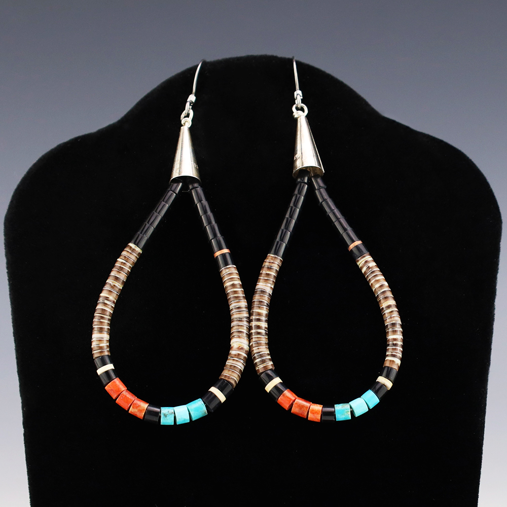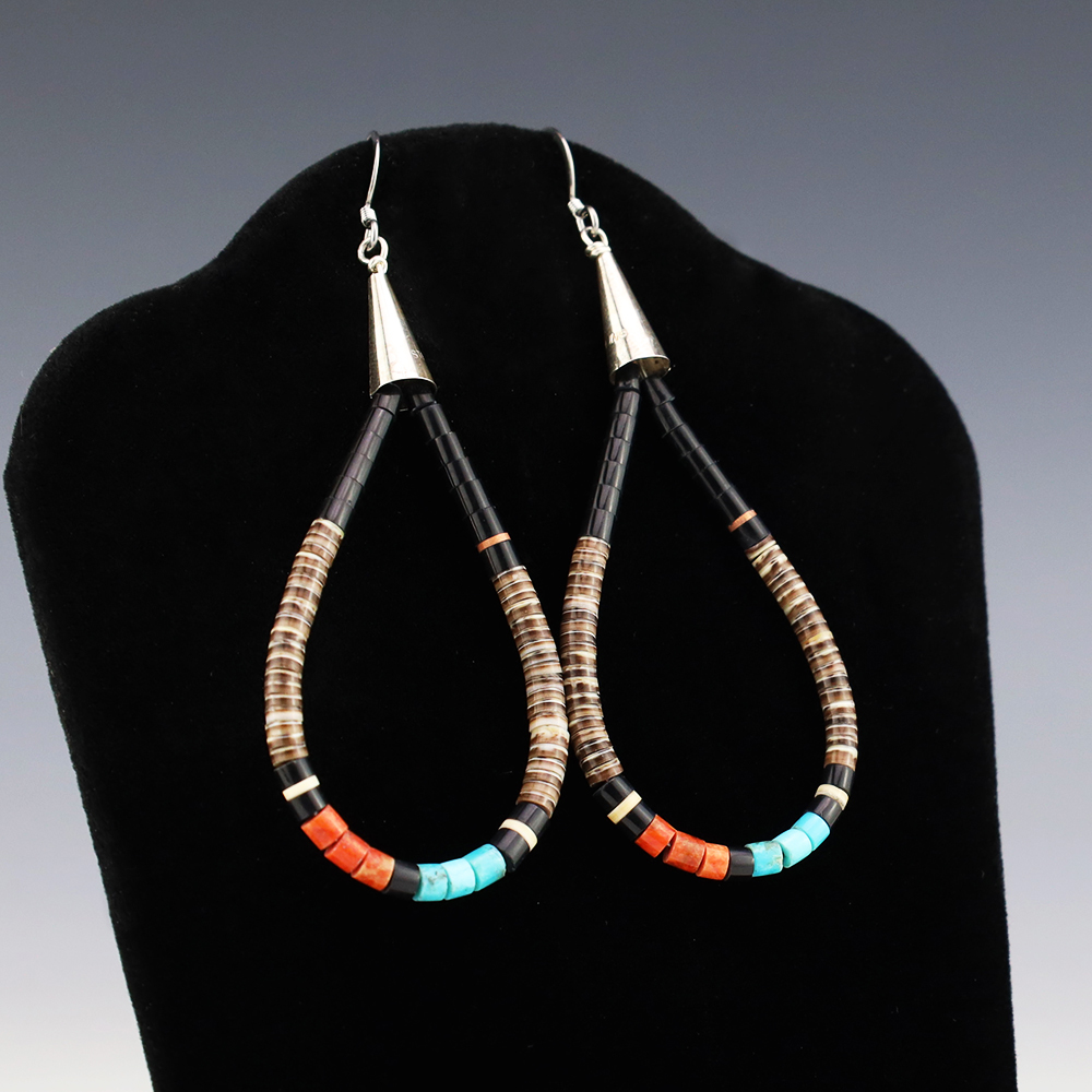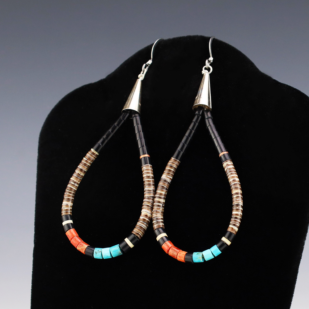 ZUNI MOTHER OF PEARL & TURQUOISE EARRINGS BY NANCY AND SHELDON WESTIKA