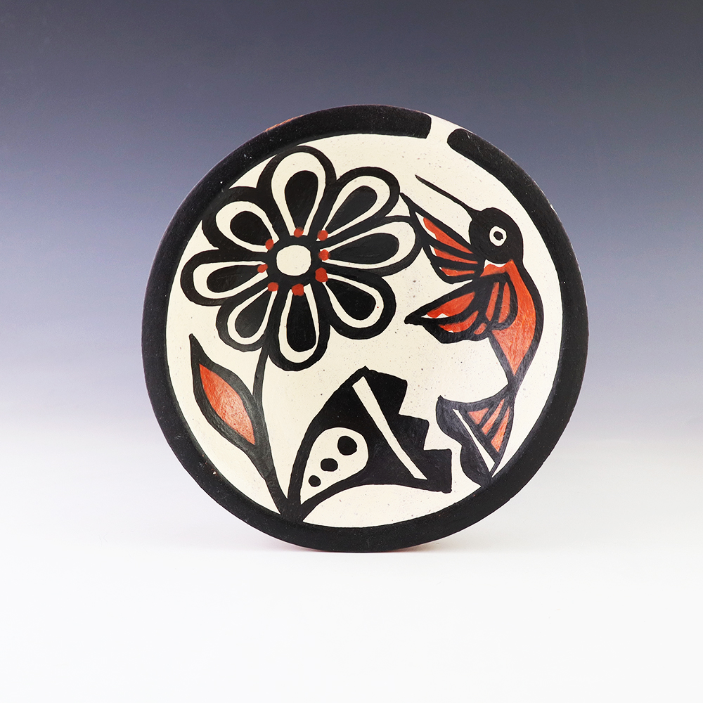 A charming addition to any art or pottery collection. Birdell “Vine Flower” Bourdon from the Santa Clara Pueblo, made this pottery bear with natural clay. Birdell continues a long tradition of hand coiling pottery. She was taught the traditional methods by her mother, Marie Sisneros Askan, and she has been...