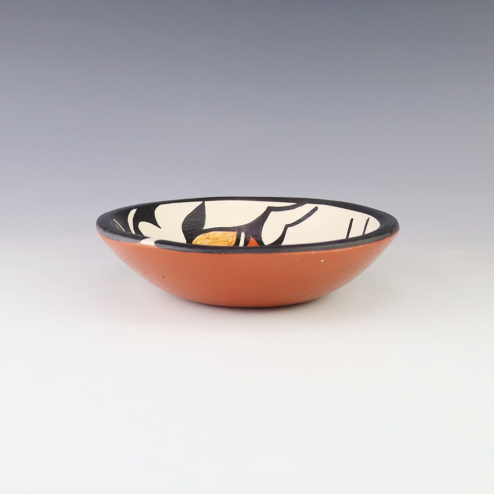 A charming addition to any art or pottery collection. Birdell “Vine Flower” Bourdon from the Santa Clara Pueblo, made this pottery bear with natural clay. Birdell continues a long tradition of hand coiling pottery. She was taught the traditional methods by her mother, Marie Sisneros Askan, and she has been...