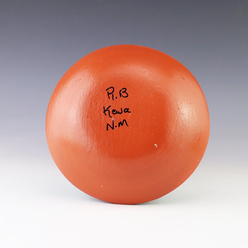Born in 1968, Rose Pacheco made her first pottery figures while working with her parents when she was seven years old. When her mother’s health started failing, Rose and her Navajo boyfriend Billy Veale stepped in and assumed the family’s pottery making business. They both make, paint and fire the pots. A unique addition to any pottery or Native American art collection. Signed