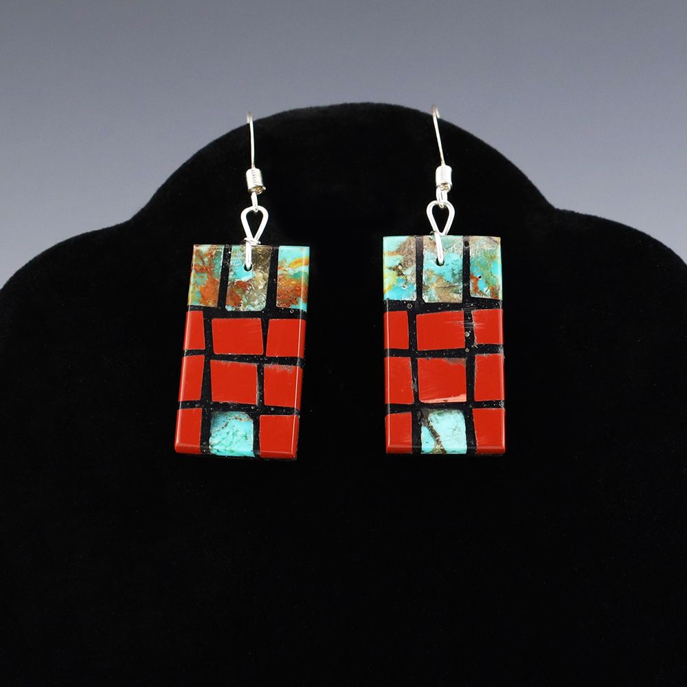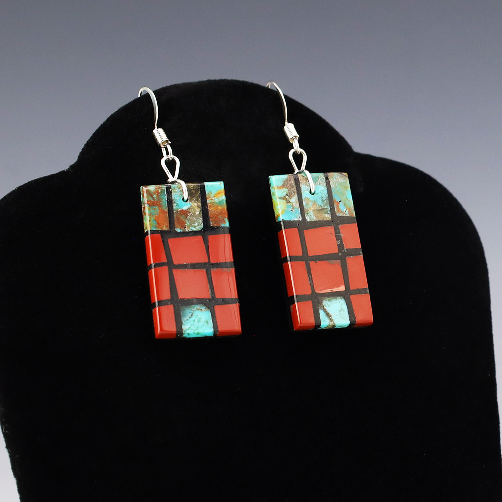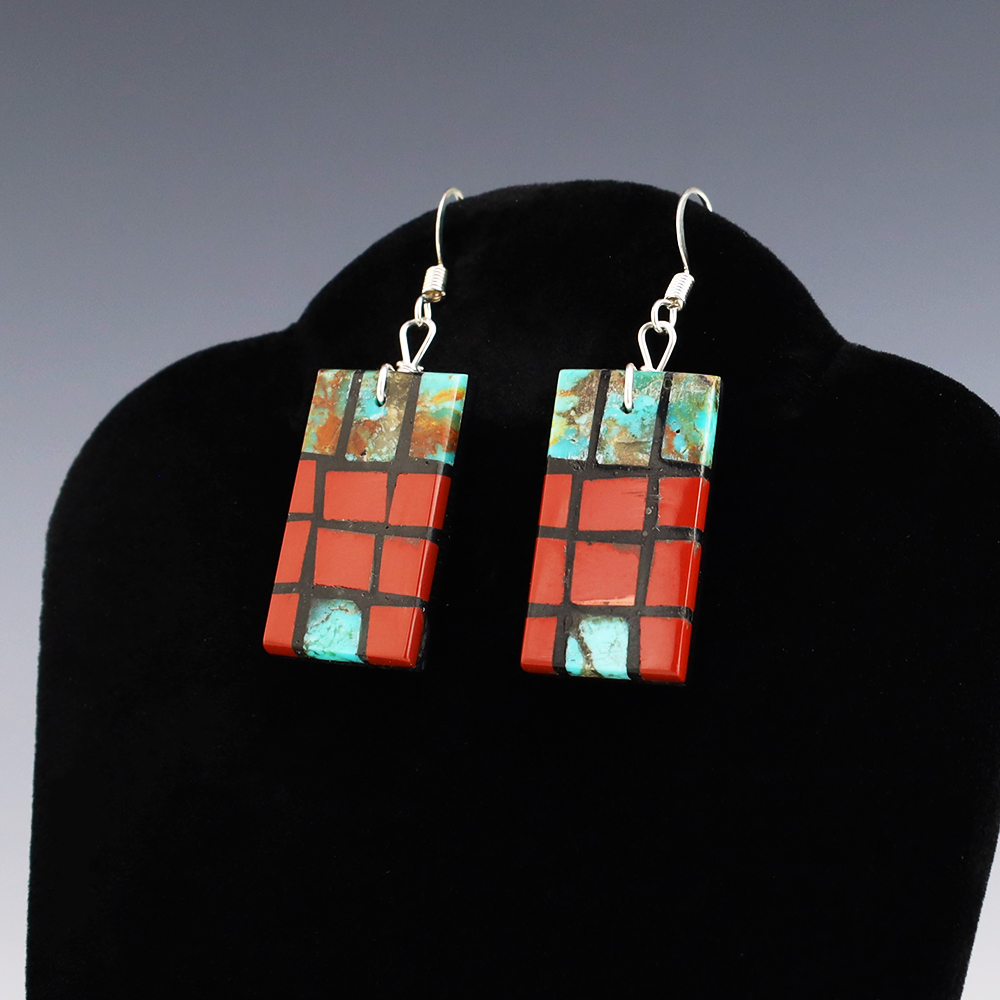 INLAY EARRINGS BY JASON BOBELU ZUNI NATIVE AMERICAN