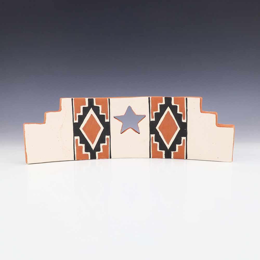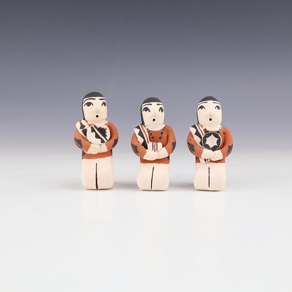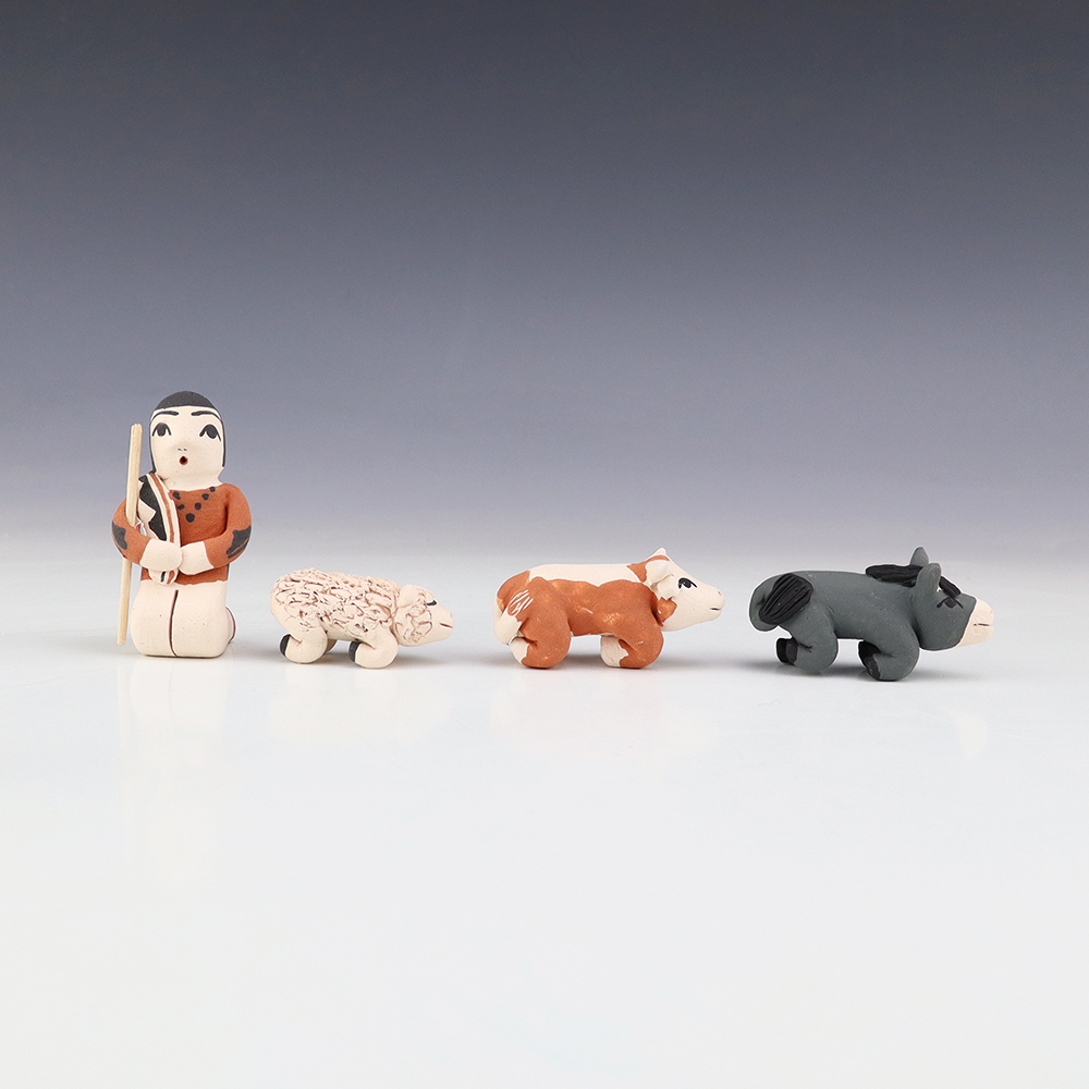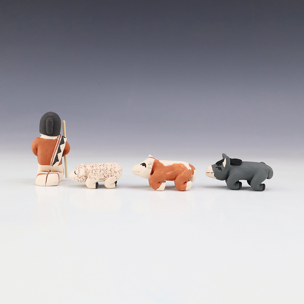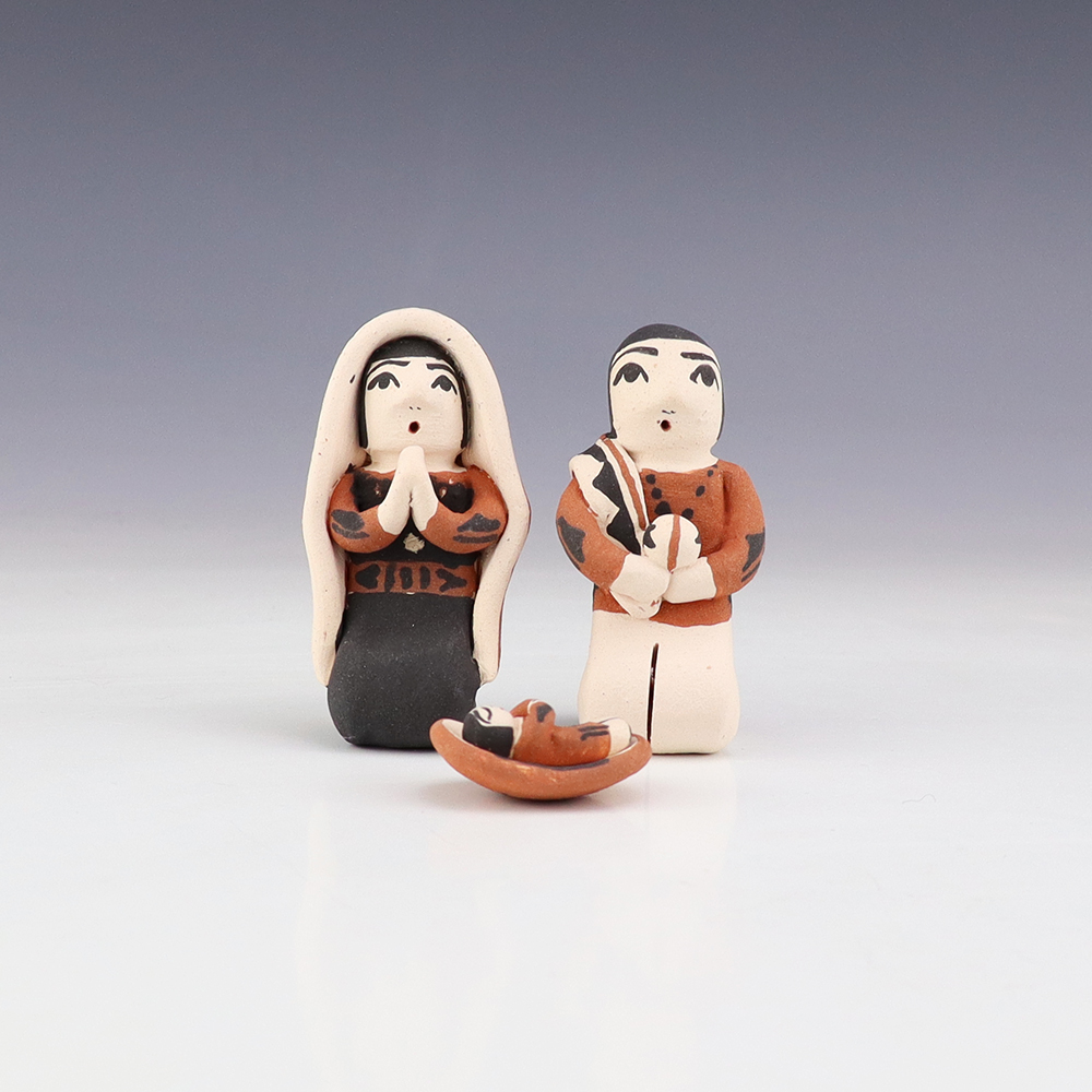 Kewa potters, Angel and Ralph made this exquisite Nativity. Traditionally made and fired using an outdoor kiln. Alluring colors and patterns. This Nativity would be a wonderful addition to your collection of Native American art or pottery. Signed.