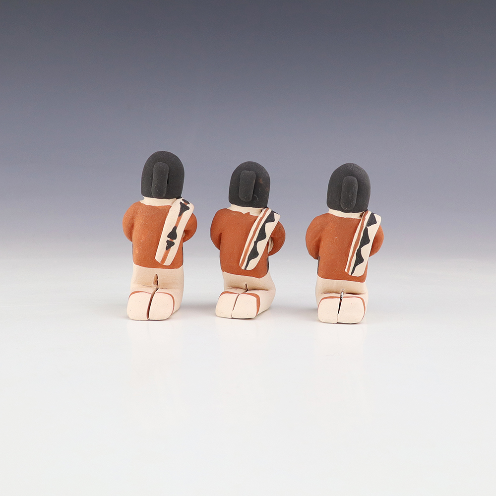 This wonderfully painted storyteller was handmade by Jemez Pueblo potter Chrislyn Fragua and depicts a woman with three children. Chrislyn uses both the coil method and pinch method to create her pottery piece and as in traditional storytellers, Chrislyn’s storytellers have their mouths open. Storytellers represent the passing down of...
