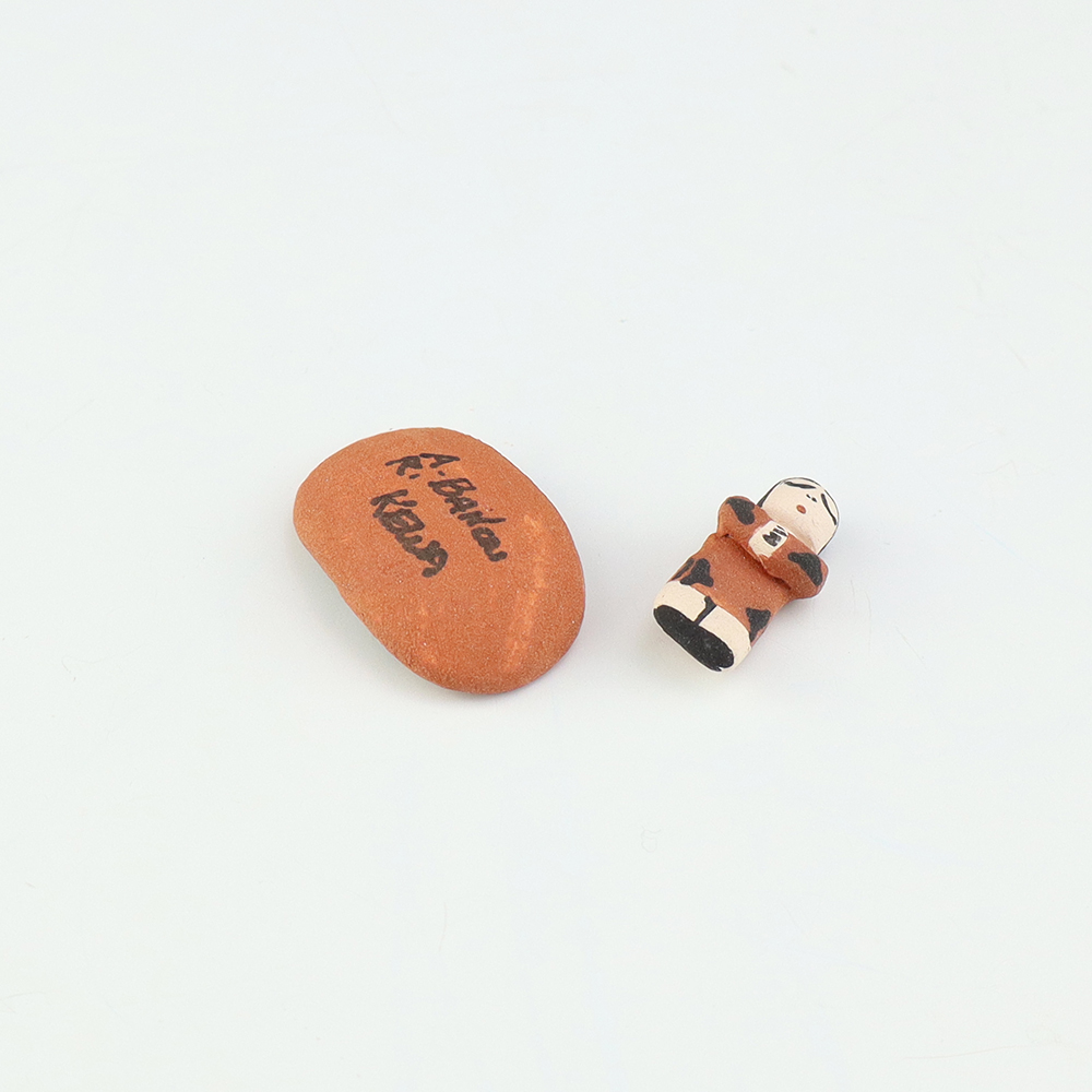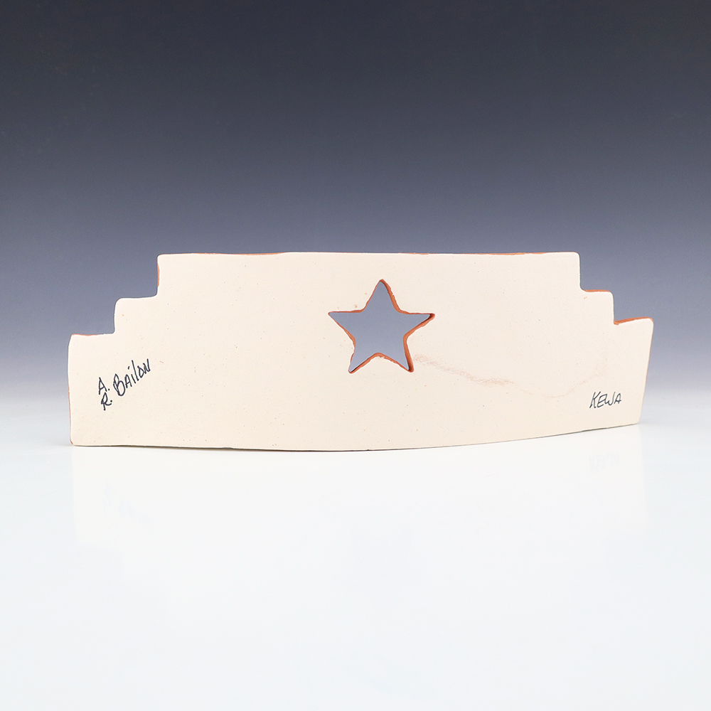 Cochiti potter Johnna Herrera hand crafted this outstanding pottery storyteller, which depicts a lady with a child. Storytellers represent the passing down of stories orally through Pueblo tradition. Signed 4 1/4” tall x 2 3/4″ long x 2 1/4″ Artist card included