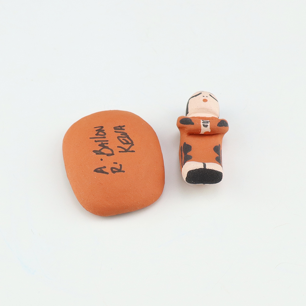A charming addition to any art or pottery collection. Birdell “Vine Flower” Bourdon from the Santa Clara Pueblo, made this pottery bear with natural clay. Birdell continues a long tradition of hand coiling pottery. She was taught the traditional methods by her mother, Marie Sisneros Askan, and she has been...