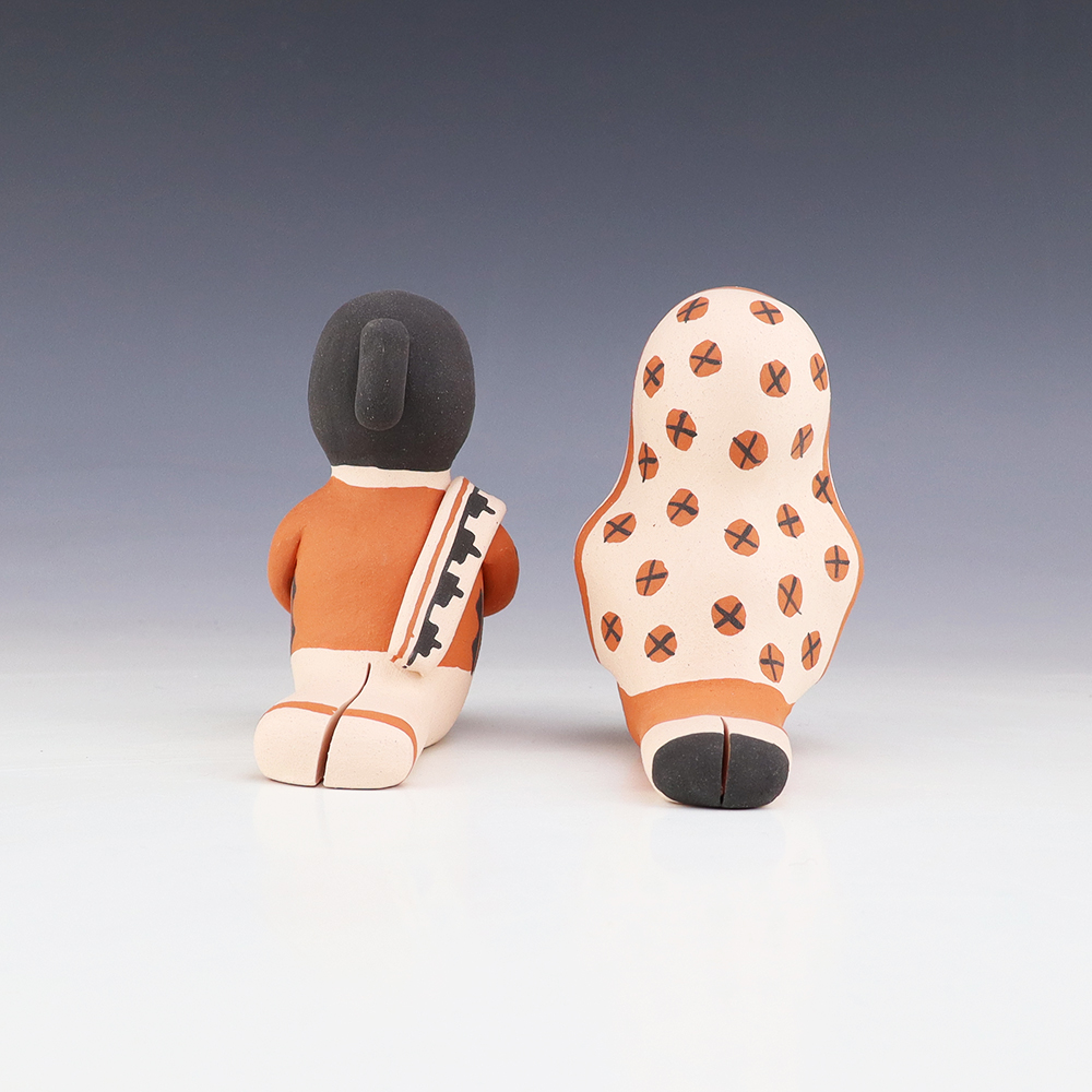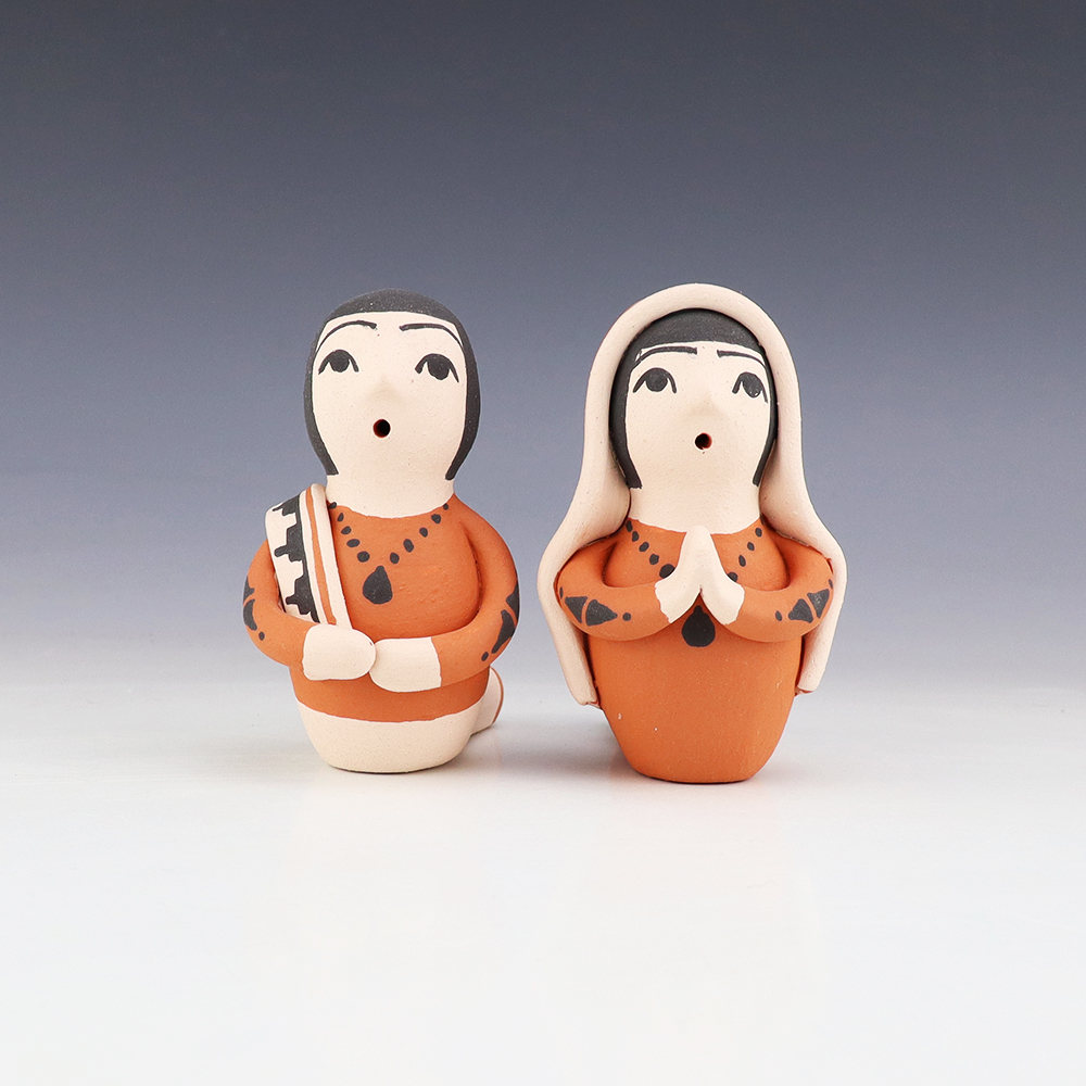 Kewa potters, Angel and Ralph made this exquisite Nativity. Traditionally made and fired using an outdoor kiln. Alluring colors and patterns. This Nativity would be a wonderful addition to your collection of Native American art or pottery. Signed.