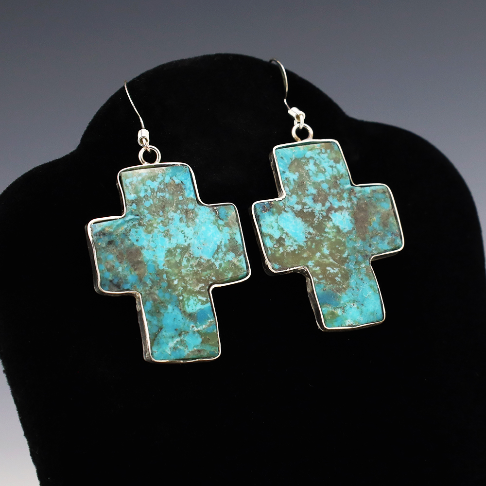 NATIVE AMERICAN ZUNI TURQUOISE EARRINGS BY NANCY & SHELDON WESTIKA