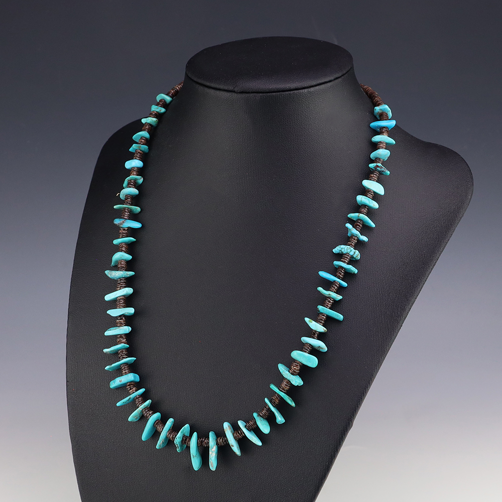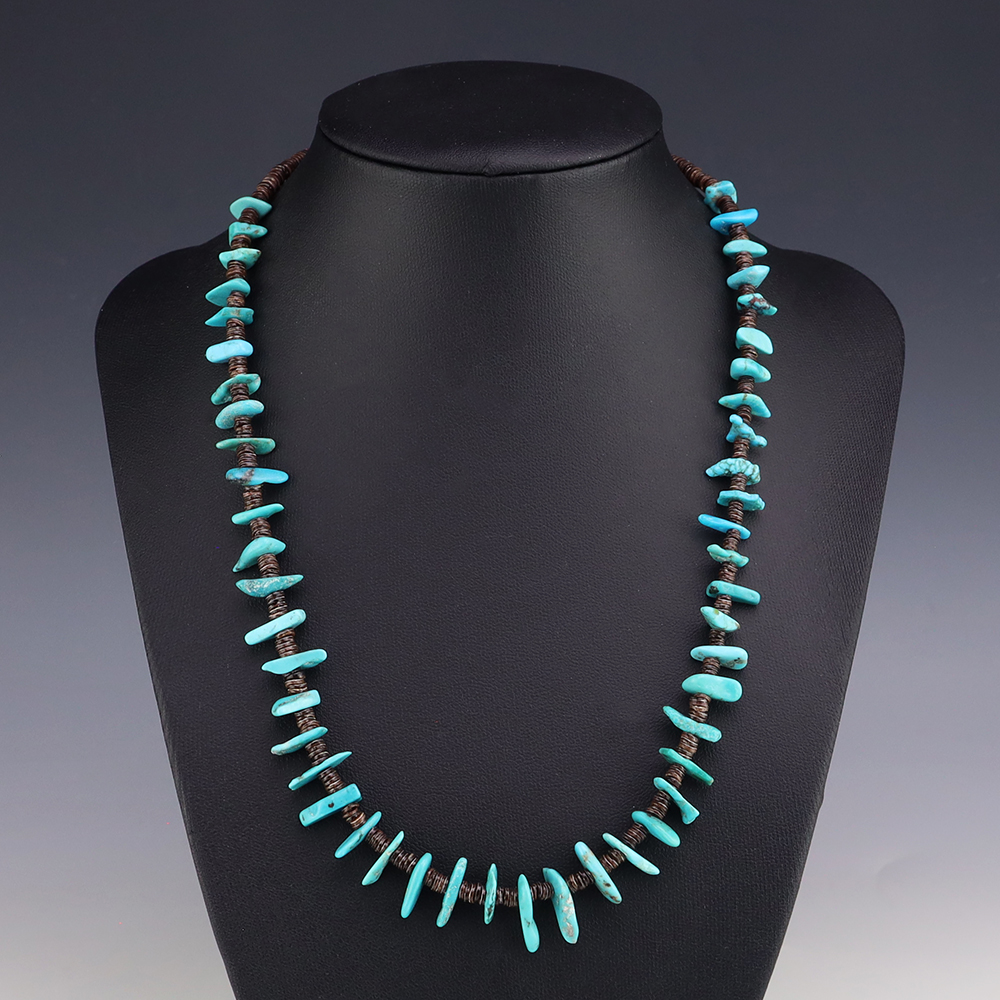 Kewa (Santo Domingo) artists are known for their heishi. The word “heishi“ means “shell” in the Keresan language. Traditionally Kewa jewelry makers created their heishi jewelry out of shell. The shell is hand cut into a flat disc. Today, other stones that Santo Domingo artists cut in this manner, are also referred to as heishi. With modern tools and innovations, artists can create different styles of beads and use different gemstones like turquoise, coral, jet, serpentine, and spiny oyster.