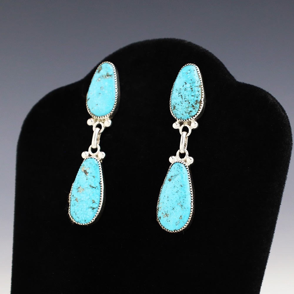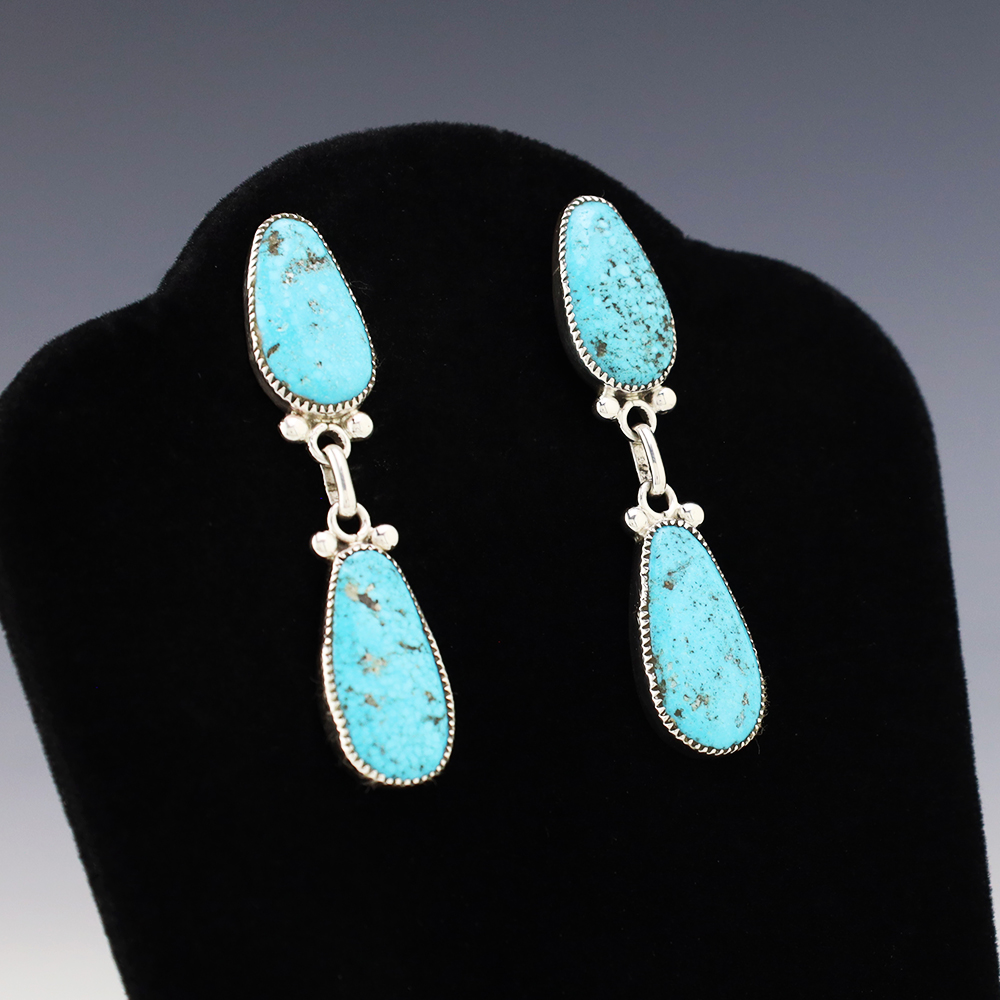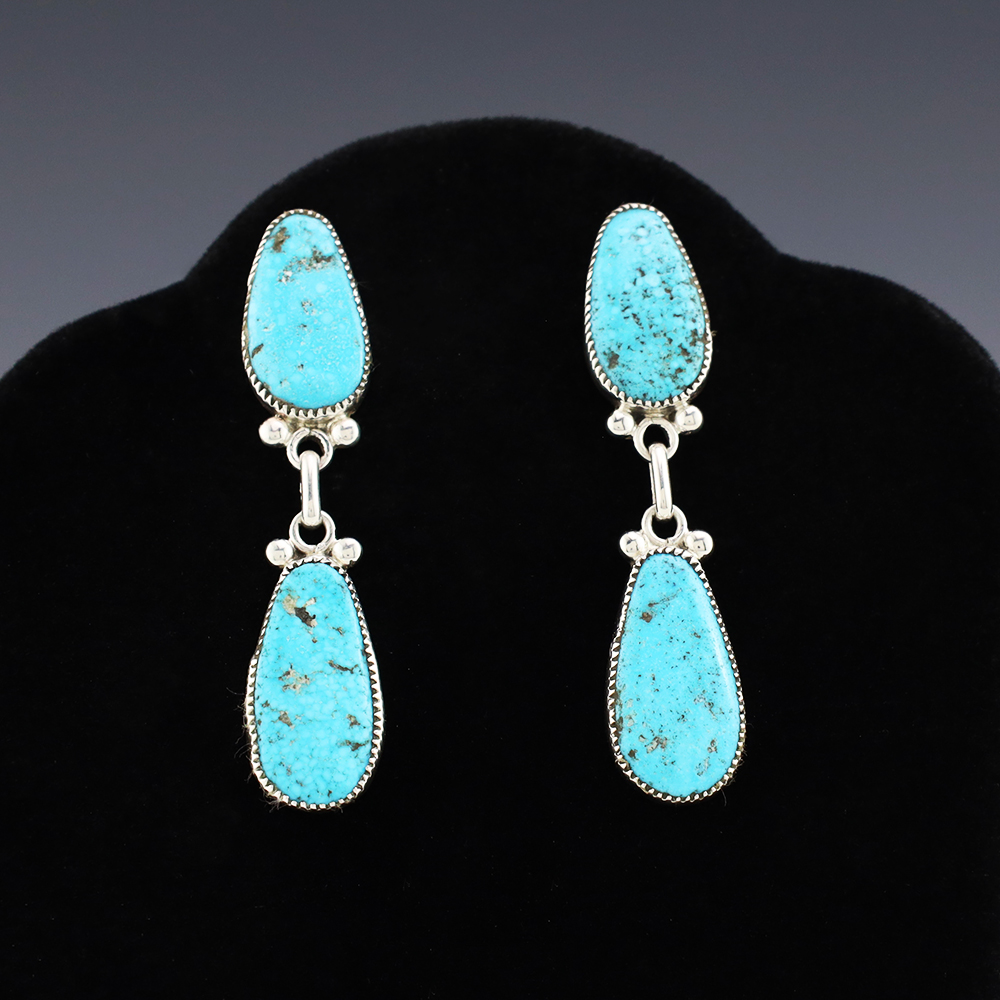 NAVAJO STERLING SILVER & TURQUOISE EARRINGS BY EVA & LINBERG BILLAH