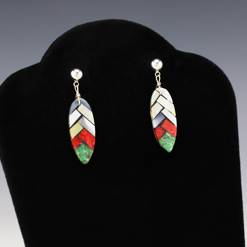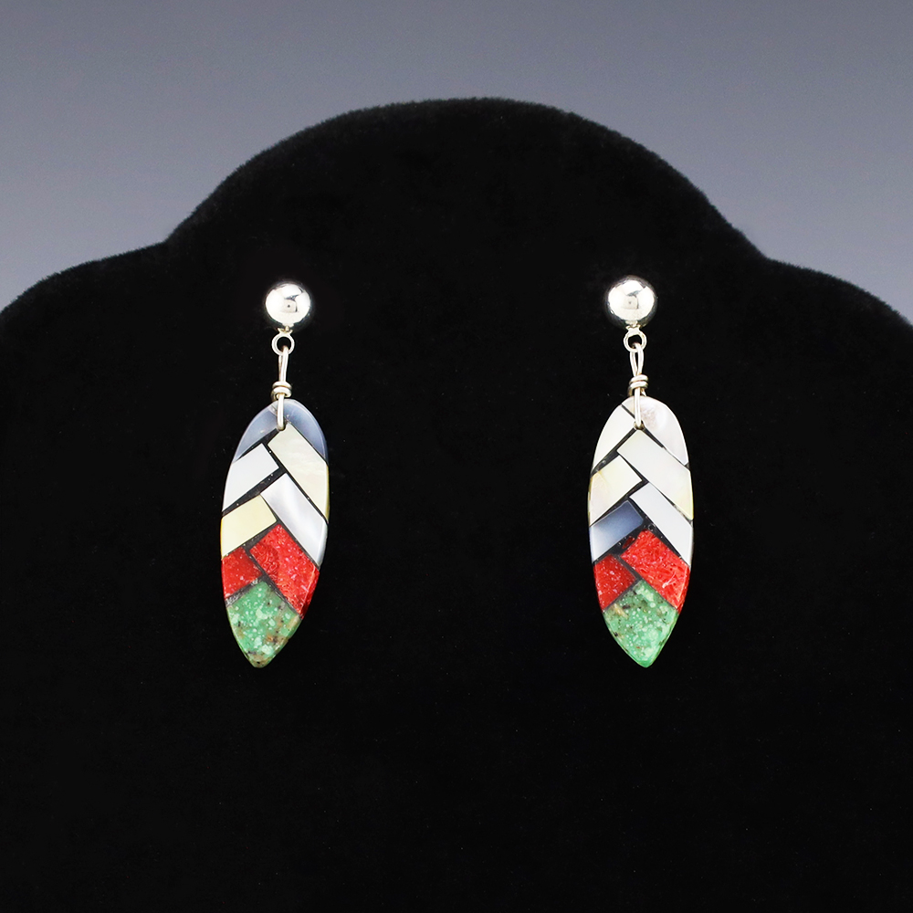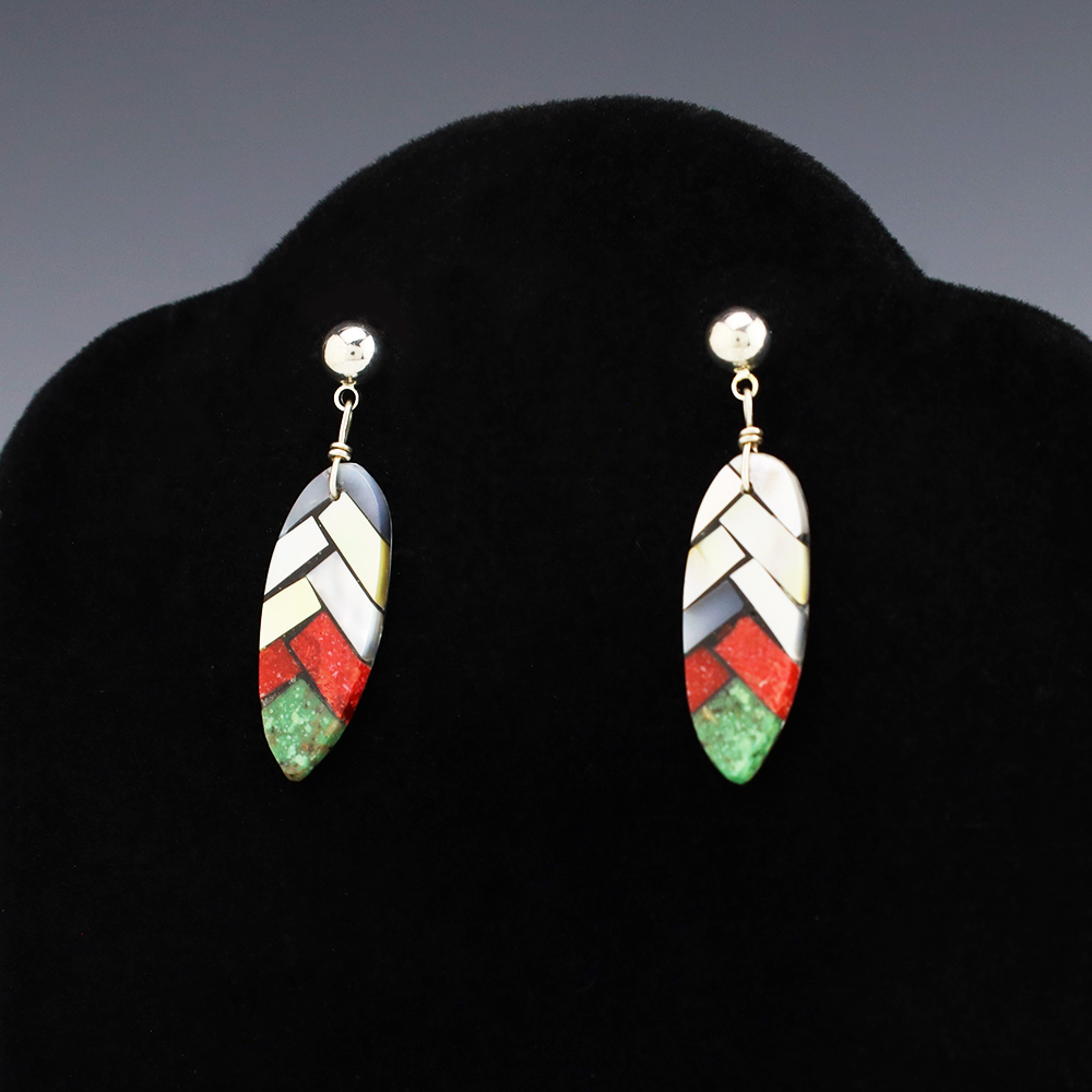 INLAY EARRINGS BY JASON BOBELU ZUNI NATIVE AMERICAN