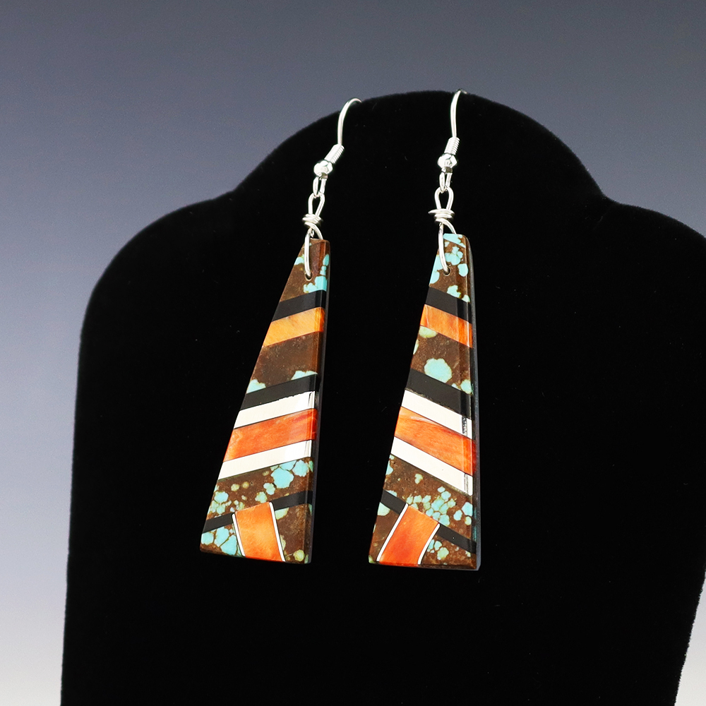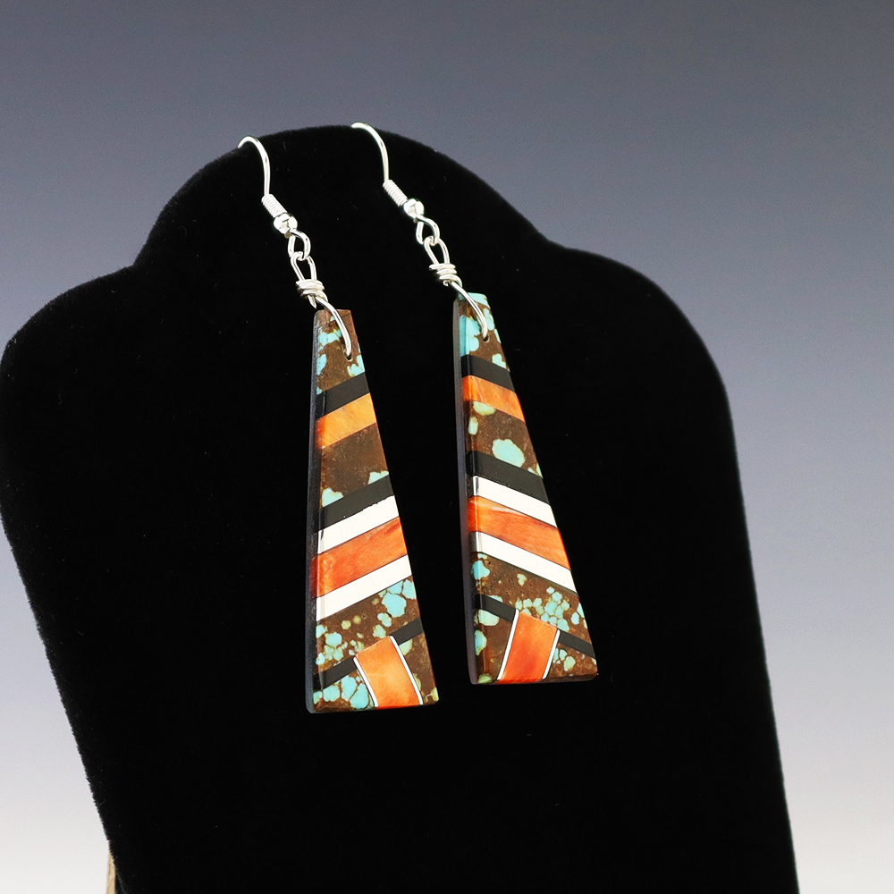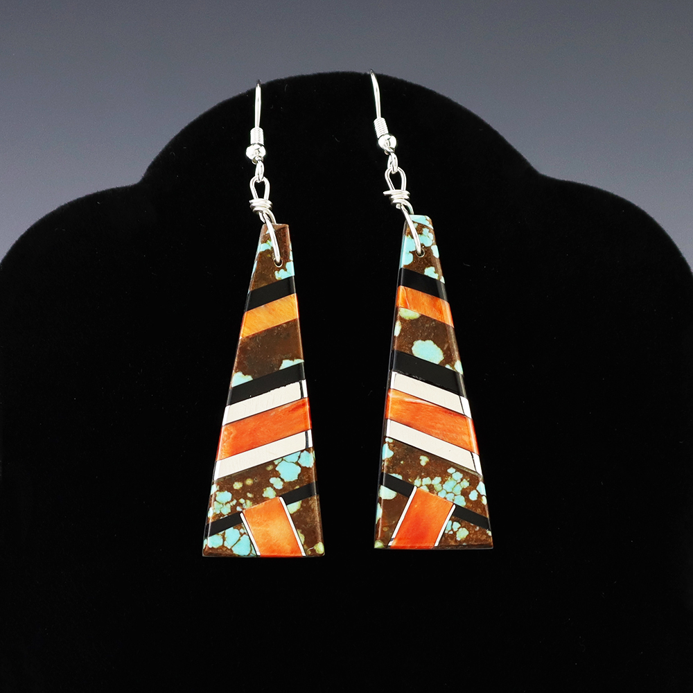 ZUNI MOTHER OF PEARL & TURQUOISE EARRINGS BY NANCY AND SHELDON WESTIKA