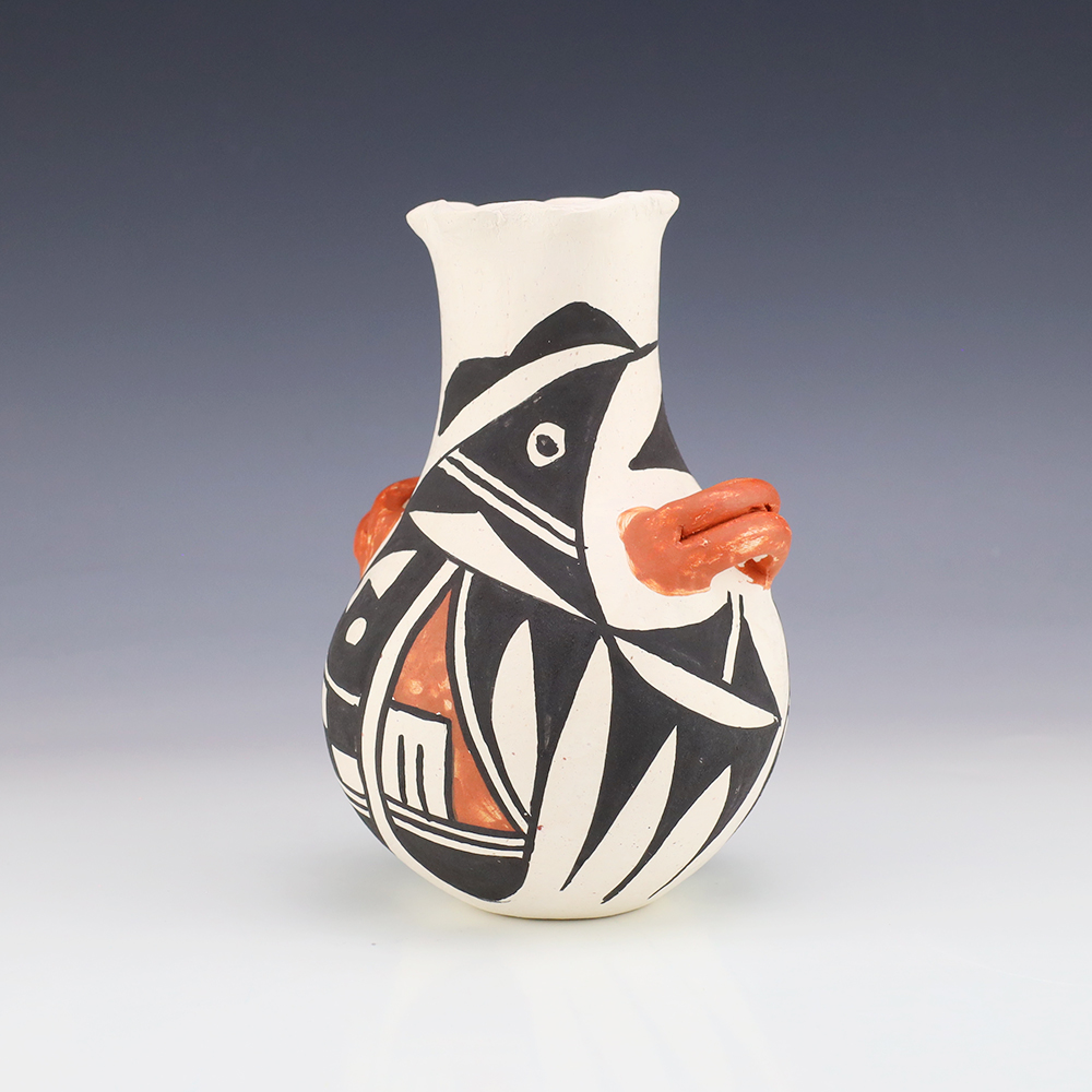 A charming addition to any art or pottery collection. Birdell “Vine Flower” Bourdon from the Santa Clara Pueblo, made this pottery bear with natural clay. Birdell continues a long tradition of hand coiling pottery. She was taught the traditional methods by her mother, Marie Sisneros Askan, and she has been...