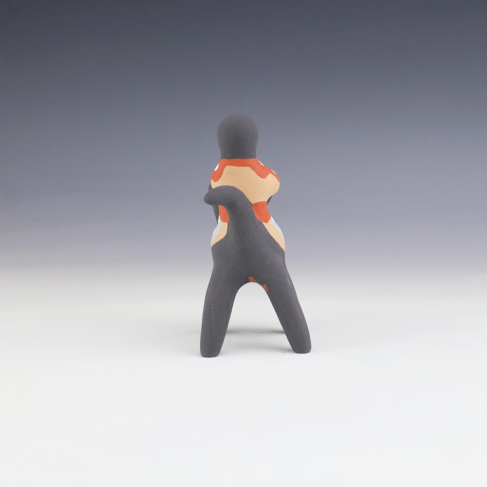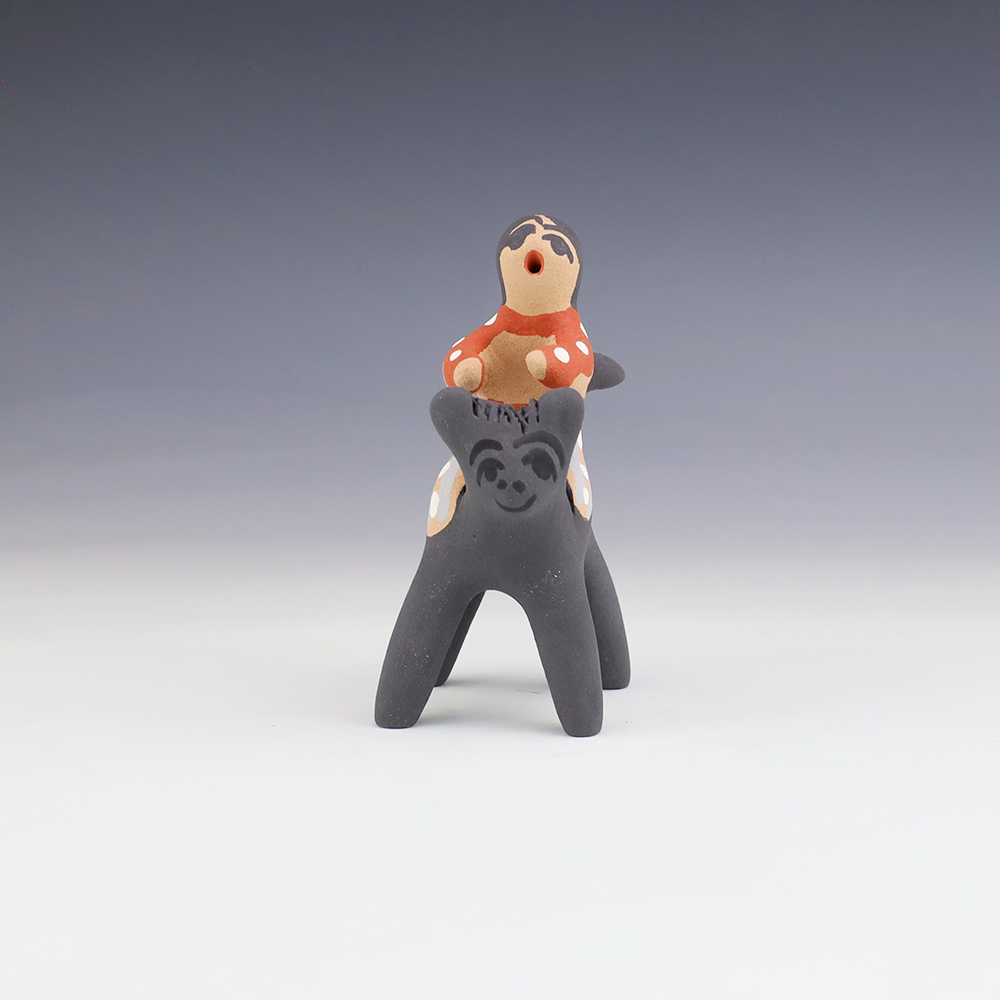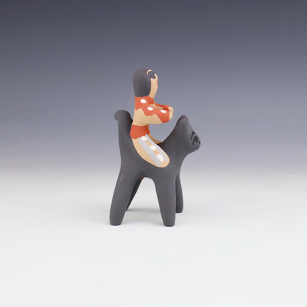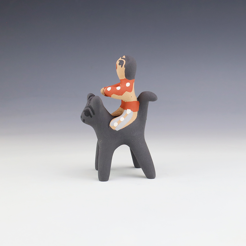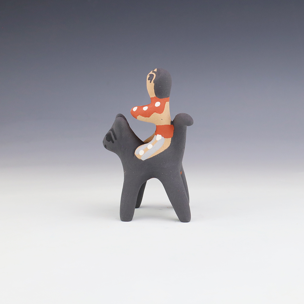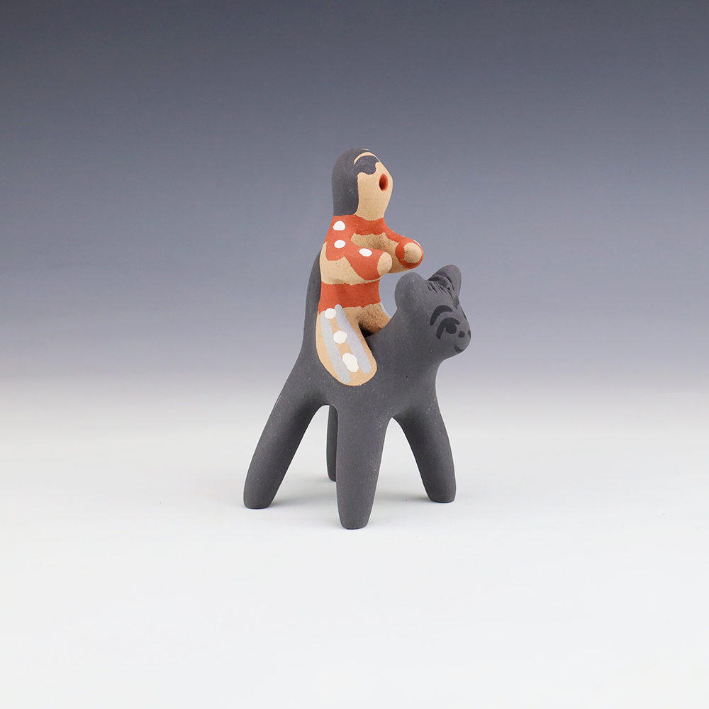 Jemez potter Felicia Fragua made this lovely horse and rider. Felicia uses both the coil method and pinch method to create her pottery pieces. Signed