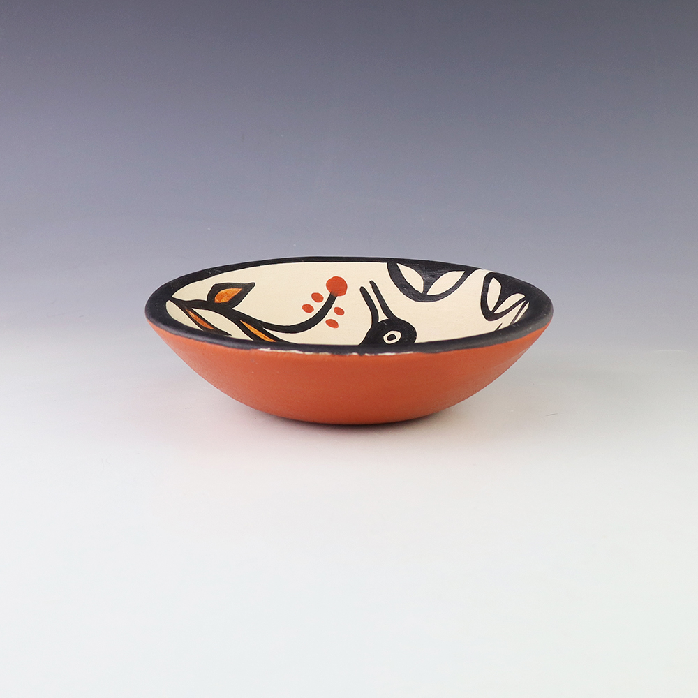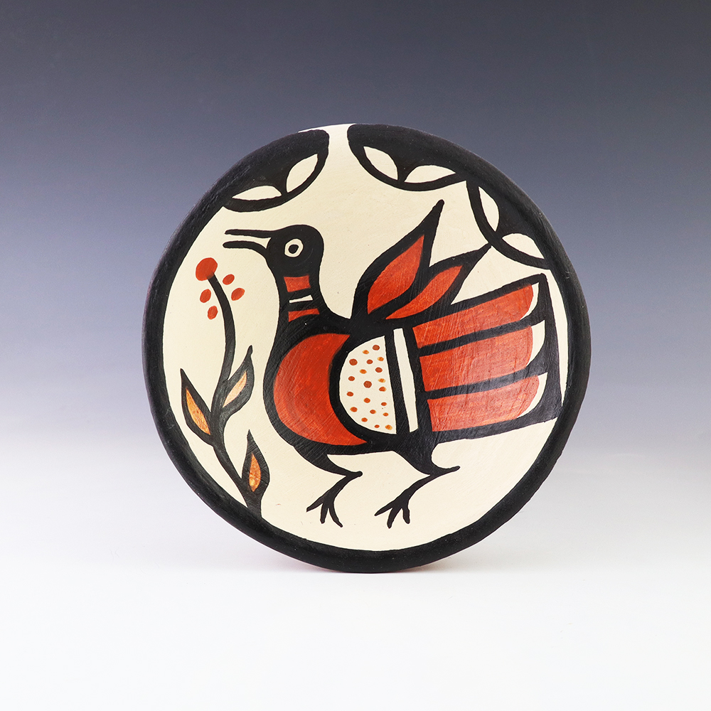 A charming addition to any art or pottery collection. Birdell “Vine Flower” Bourdon from the Santa Clara Pueblo, made this pottery bear with natural clay. Birdell continues a long tradition of hand coiling pottery. She was taught the traditional methods by her mother, Marie Sisneros Askan, and she has been...