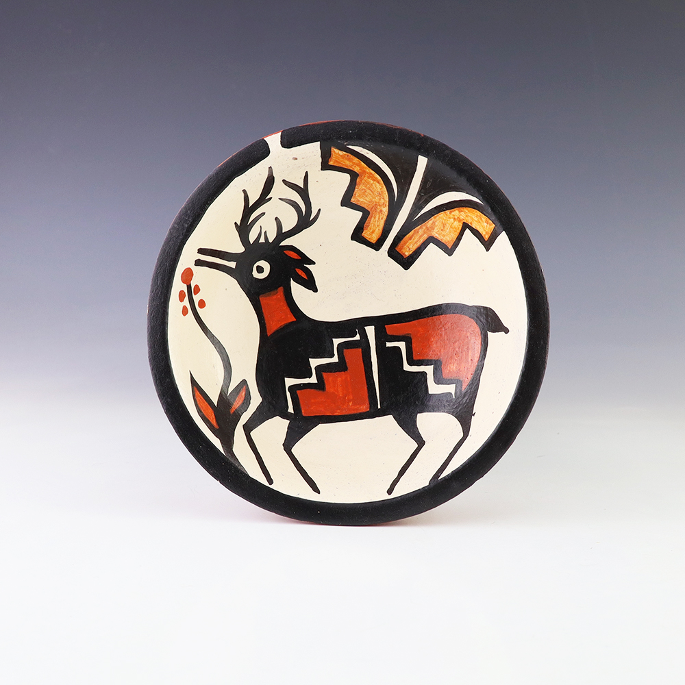 Born in 1968, Rose Pacheco made her first pottery figures while working with her parents when she was seven years old. When her mother’s health started failing, Rose and her Navajo boyfriend Billy Veale stepped in and assumed the family’s pottery making business. They both make, paint and fire the pots. A unique addition to any pottery or Native American art collection. Signed