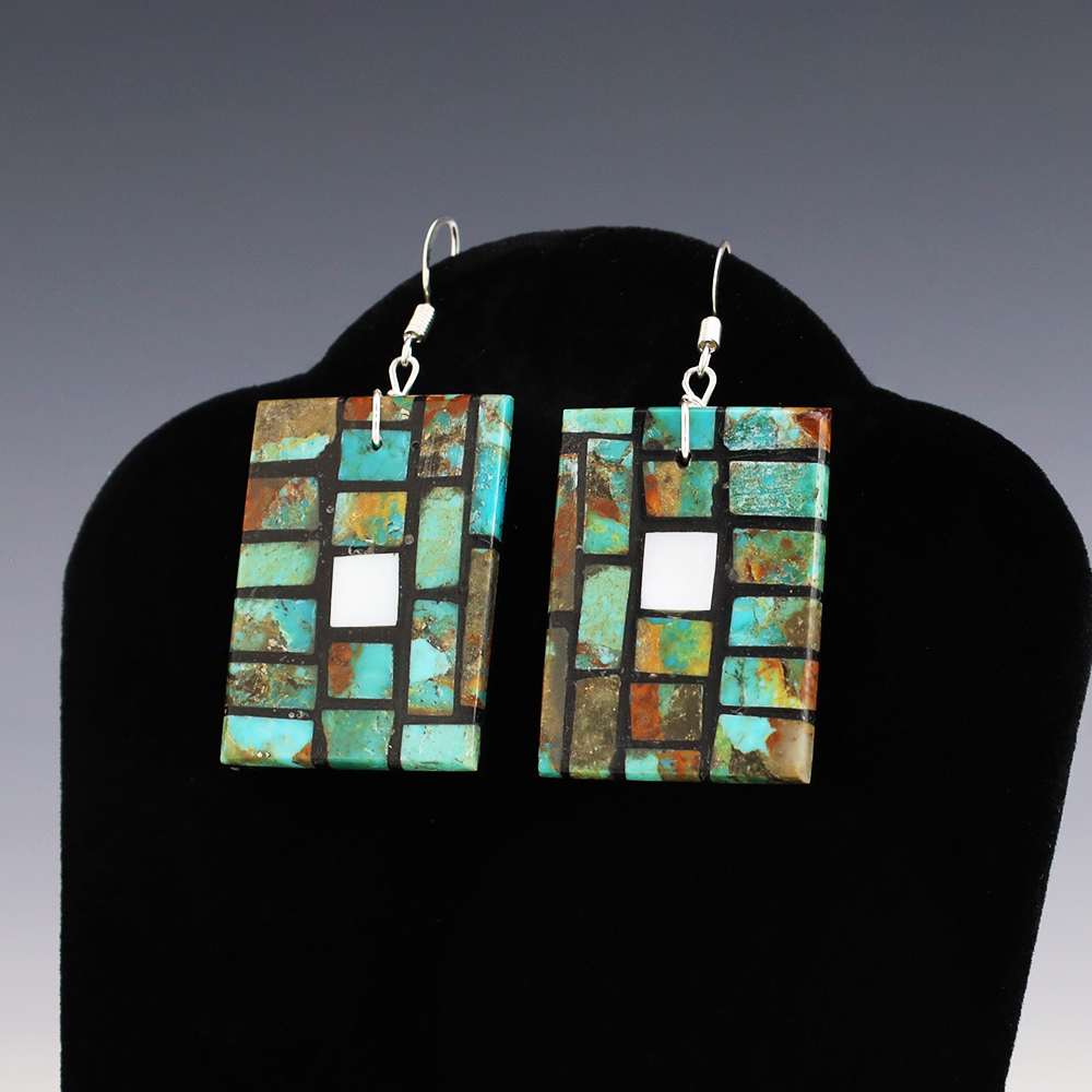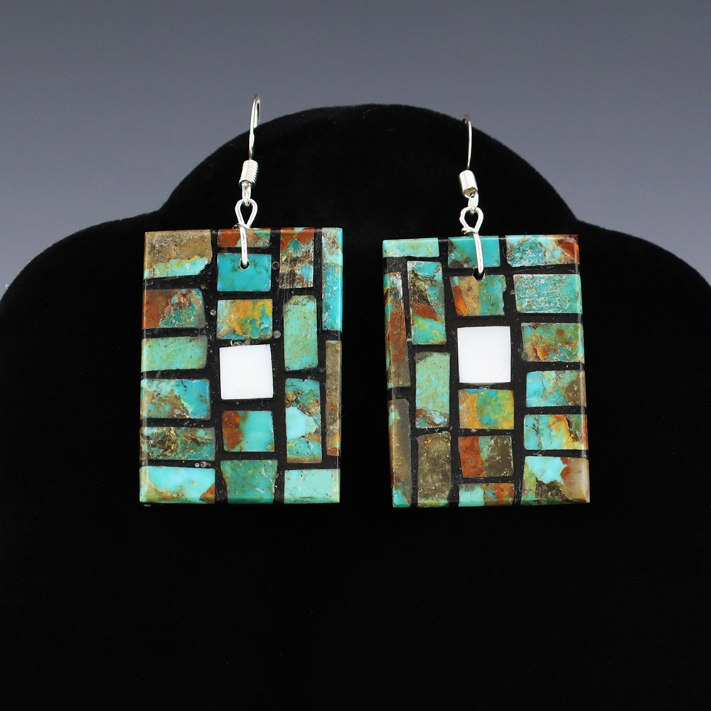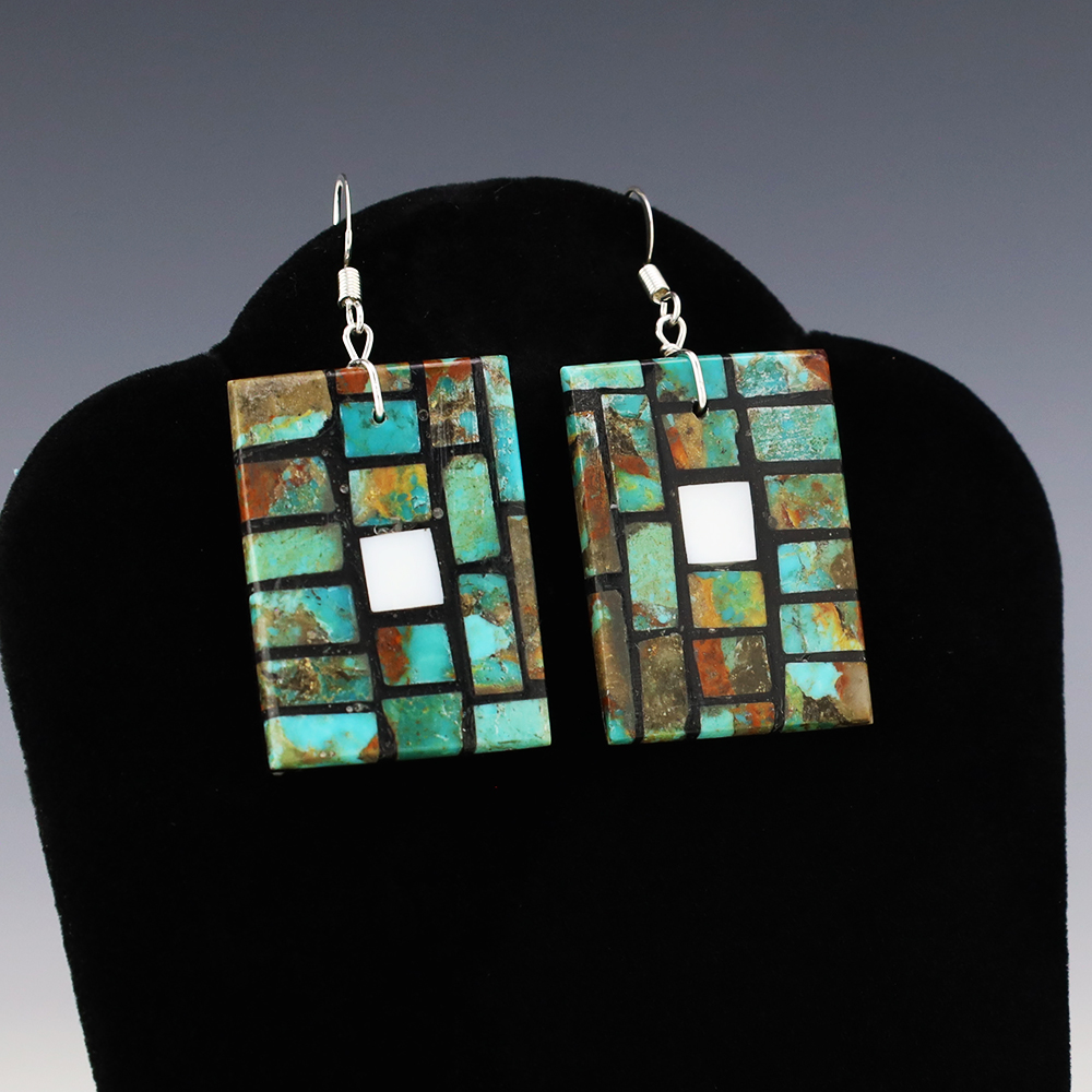 ZUNI MOTHER OF PEARL & TURQUOISE EARRINGS BY NANCY AND SHELDON WESTIKA