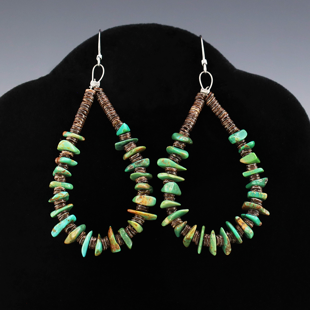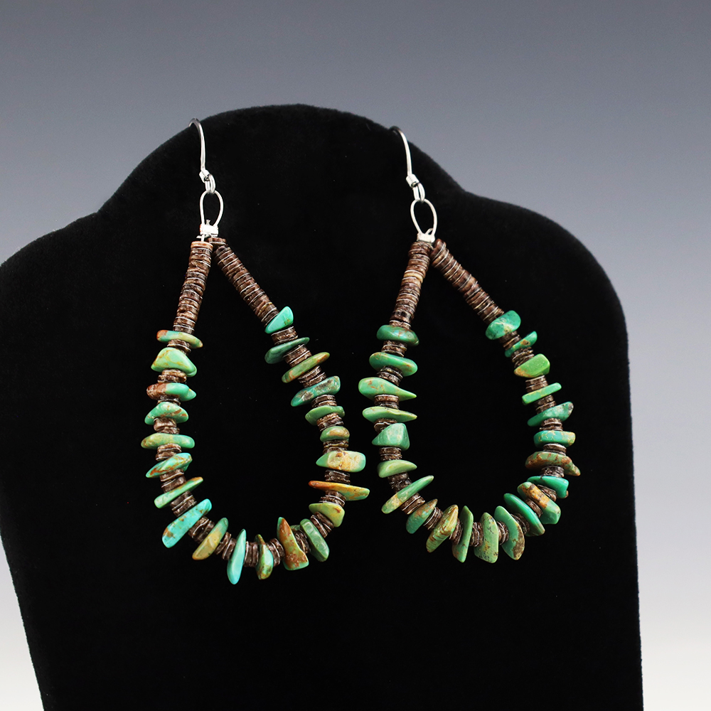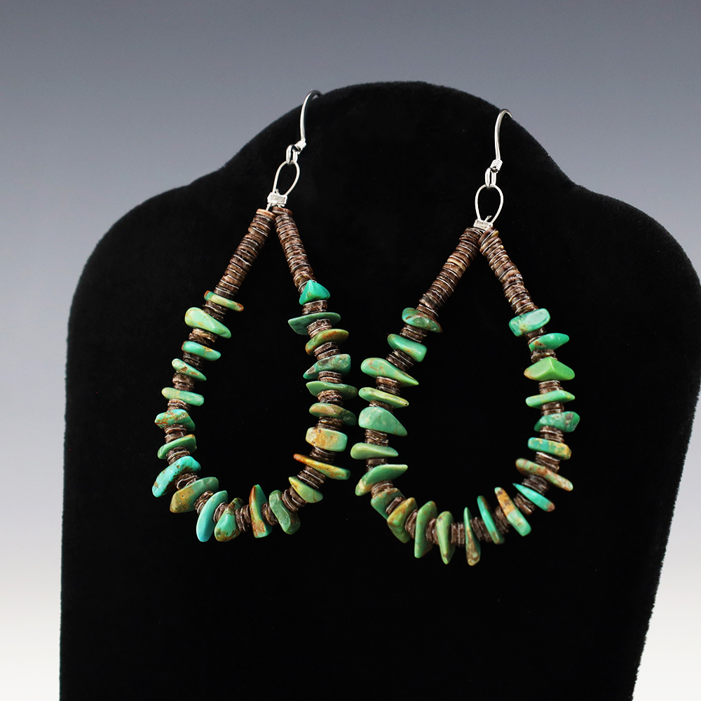 Kewa (Santo Domingo) artists are known for their heishi. The word “heishi“ means “shell” in the Keresan language. Traditionally Santo Domingo jewelry makers created their heishi jewelry out of shell. The shell is hand cut into a flat disc. Today, other stones that Santo Domingo artists cut in this manner, are also referred to as heishi. With modern tools and innovations, artists can create different styles of beads and use different gemstones like turquoise, coral, jet, serpentine, and spiny oyster.